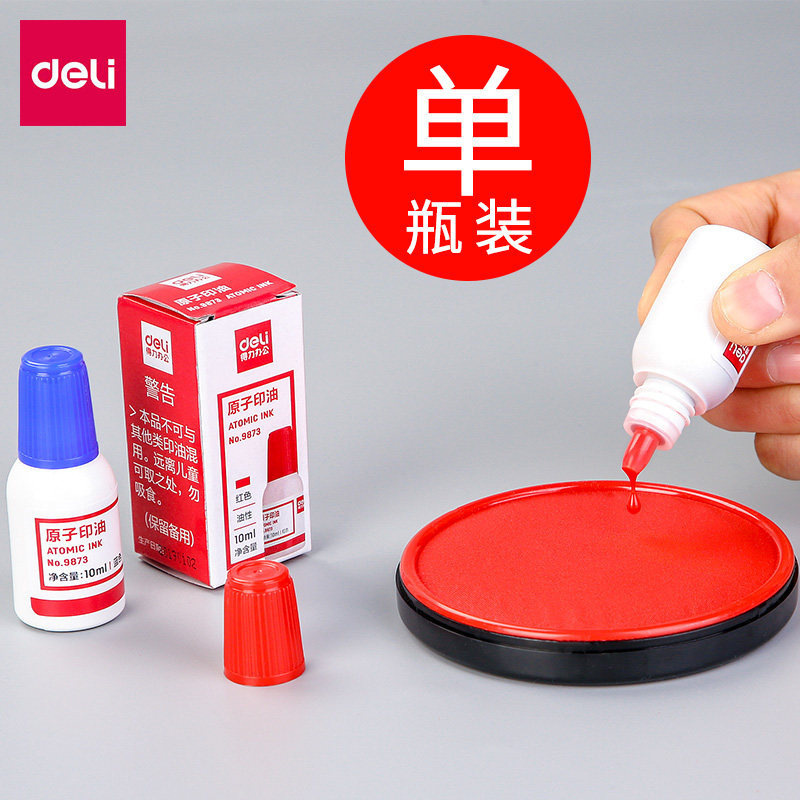 得力9873快干原子印油红色印台印泥油印章油红色快干印油办公用品