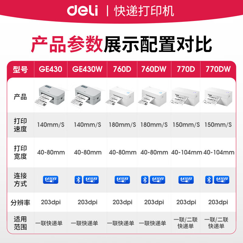 得力快递打印机快递电子面单打单机标签热敏条码标签机