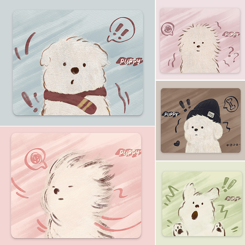 卡通潦草小狗鼠标垫小号可爱电脑桌垫女生工位家用便携锁边手腕垫