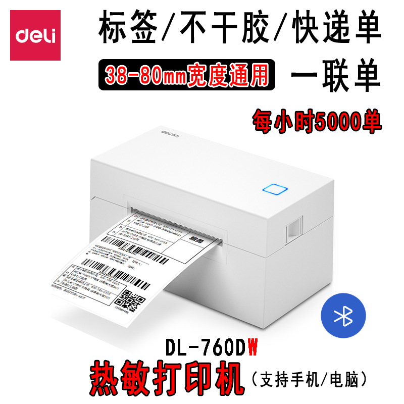 得力-760热敏打印机快递仓储物流一联单80条码不干胶打印机