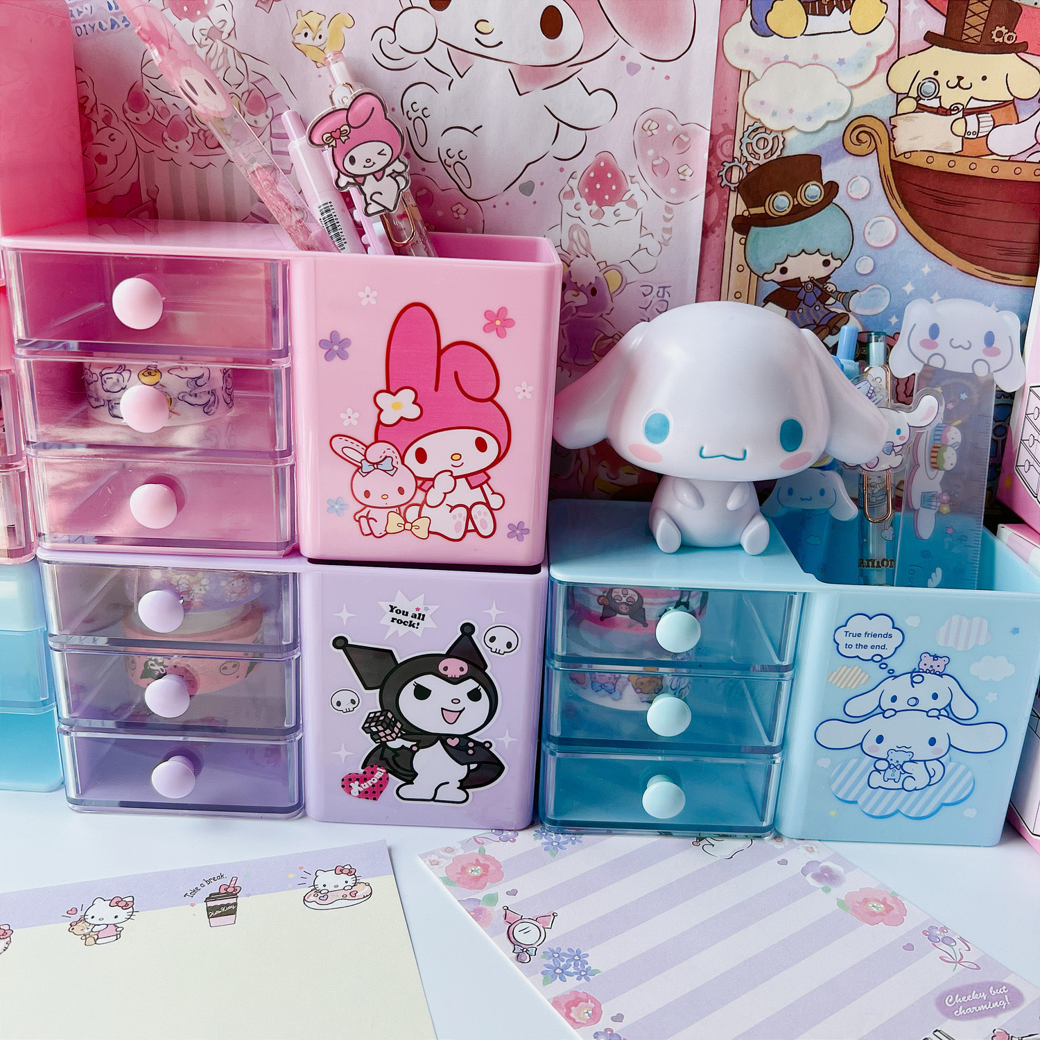可爱玉贵狗桌面笔筒卡通收纳盒美乐蒂多层抽屉整理文具笔盒学生