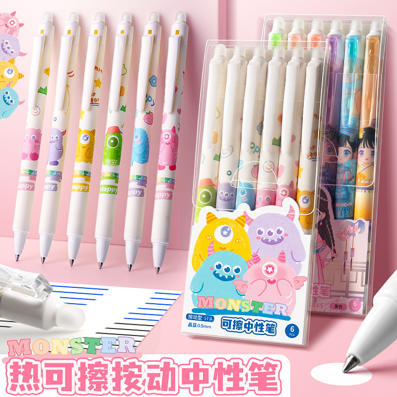 小学生热敏按动可擦笔三年级专用黑色中性笔卡通儿童速干蓝色笔芯