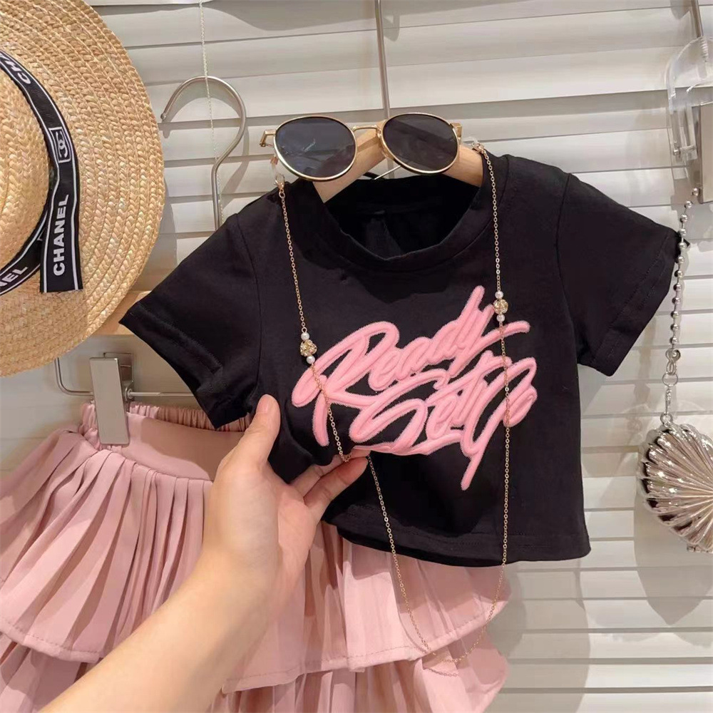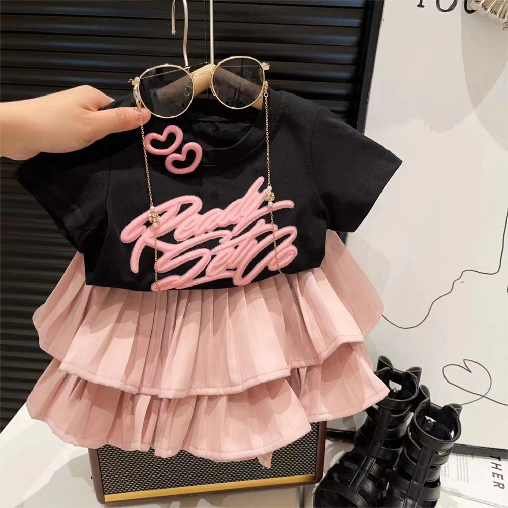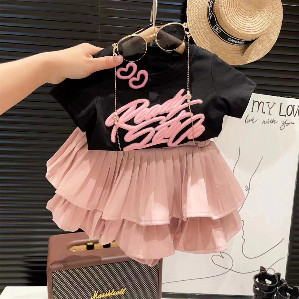 新品贴布打底衫百褶蛋糕短裙两件套2025夏装可爱女童中小童套装