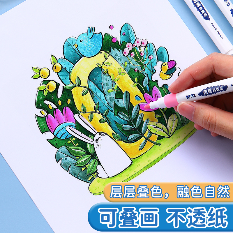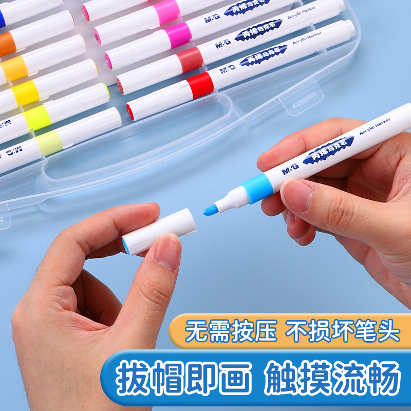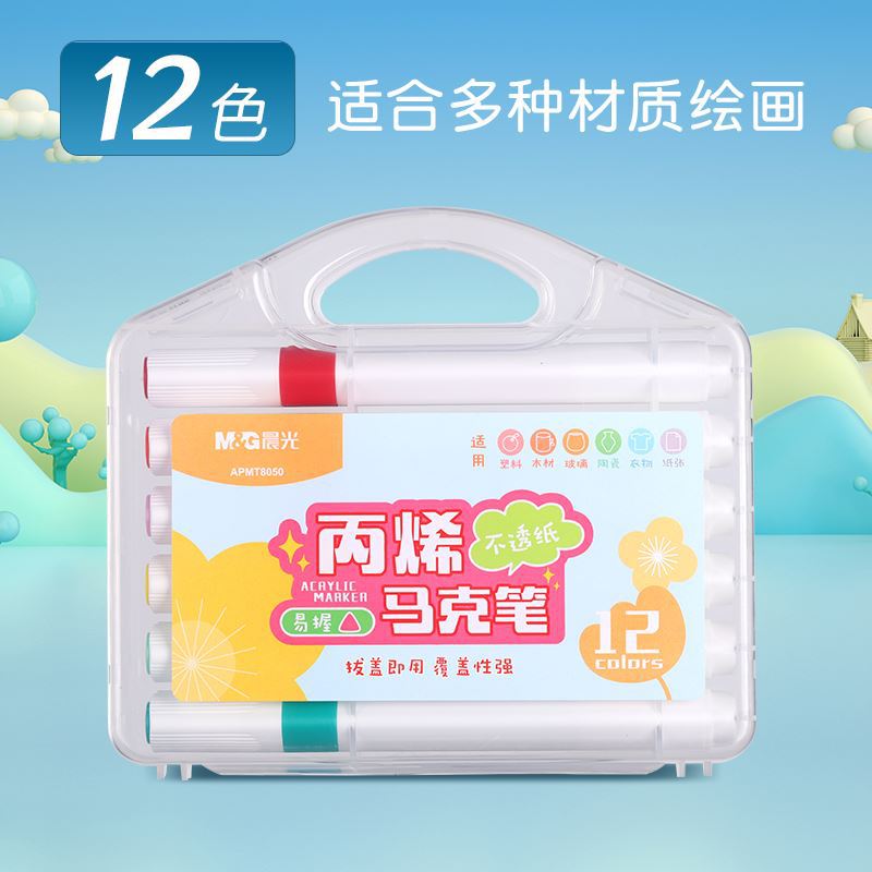 晨光丙烯马克笔套装防水不透纸儿童无毒水彩笔学生绘画用批发3313