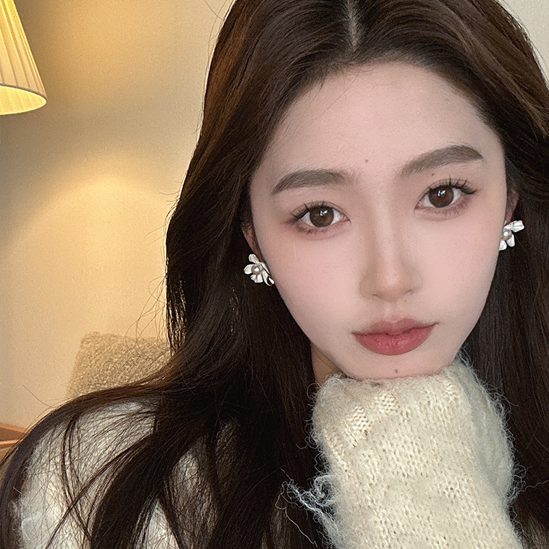 法式复古滴釉花朵珍珠耳环女气质轻奢高级感耳环独特红色新年耳饰