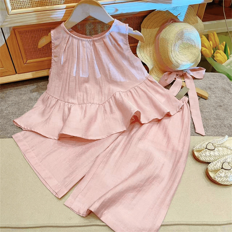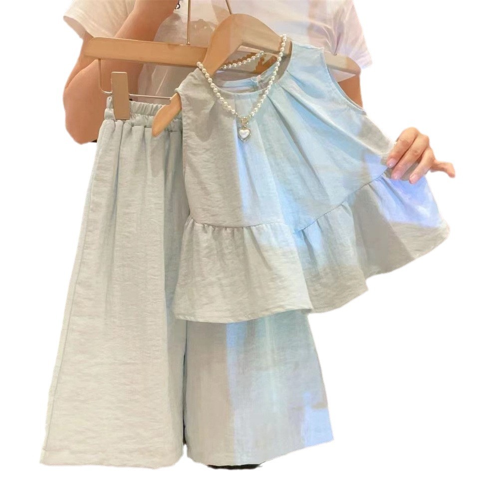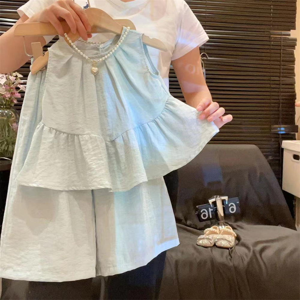 新品两件套童装韩版儿童套装2025夏季新款软牛仔短袖上衣阔腿裤