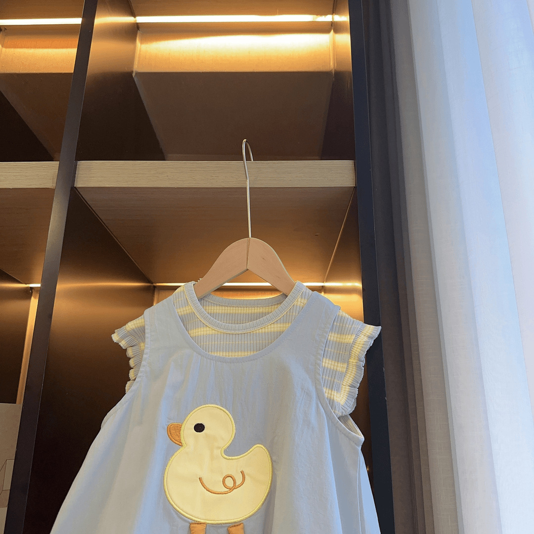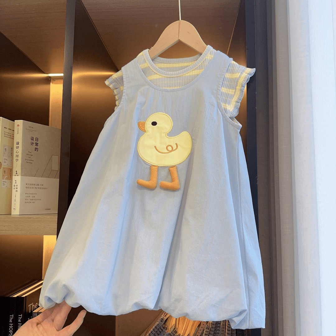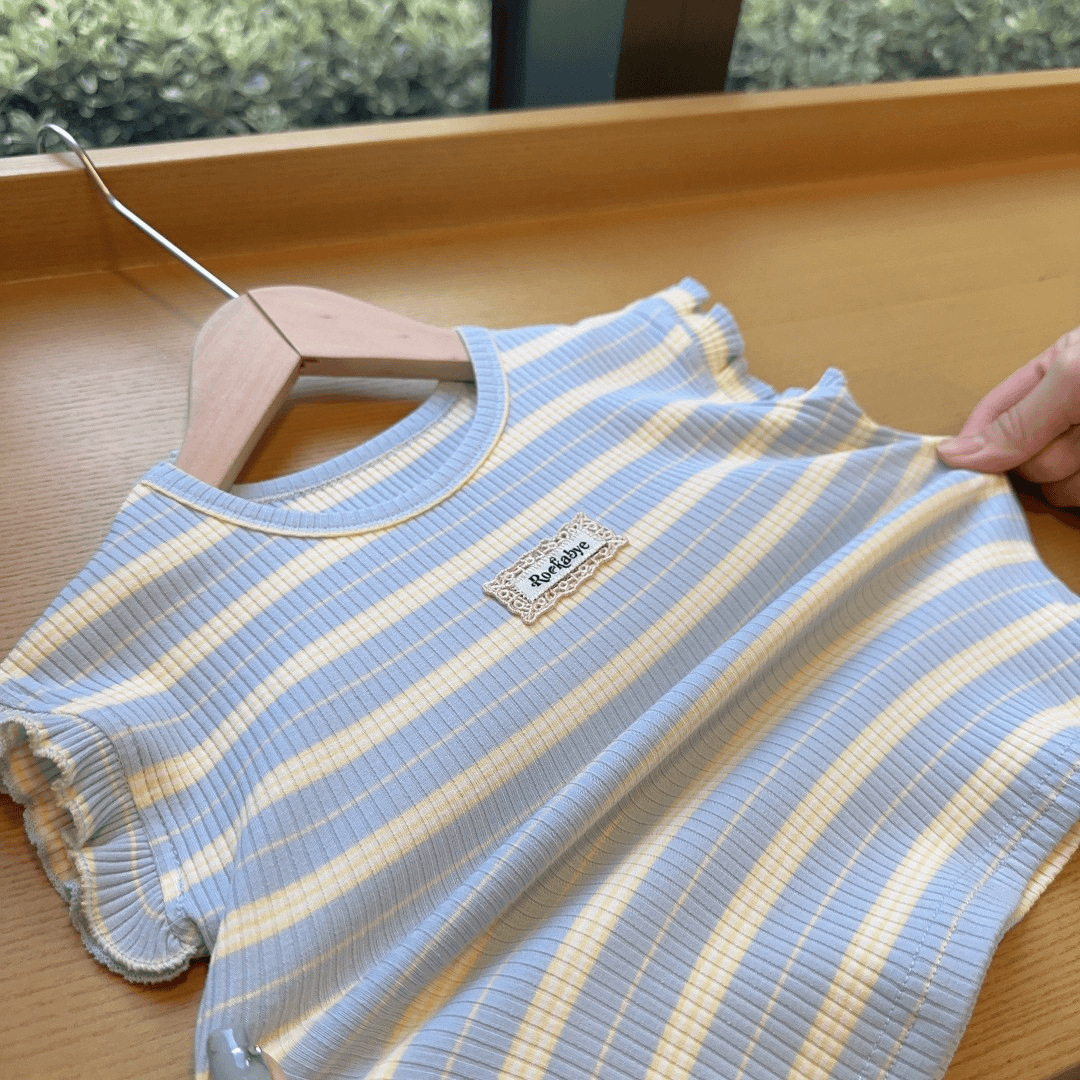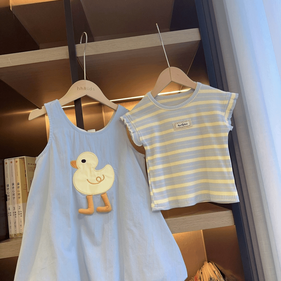新品女童条纹背心夏季套装2025新款儿童连衣裙卡通两件套