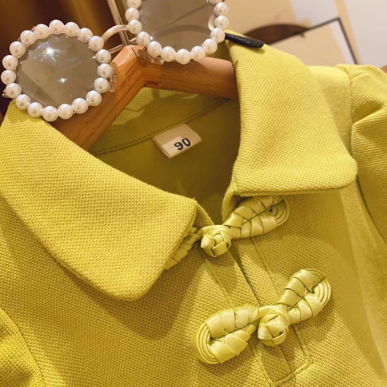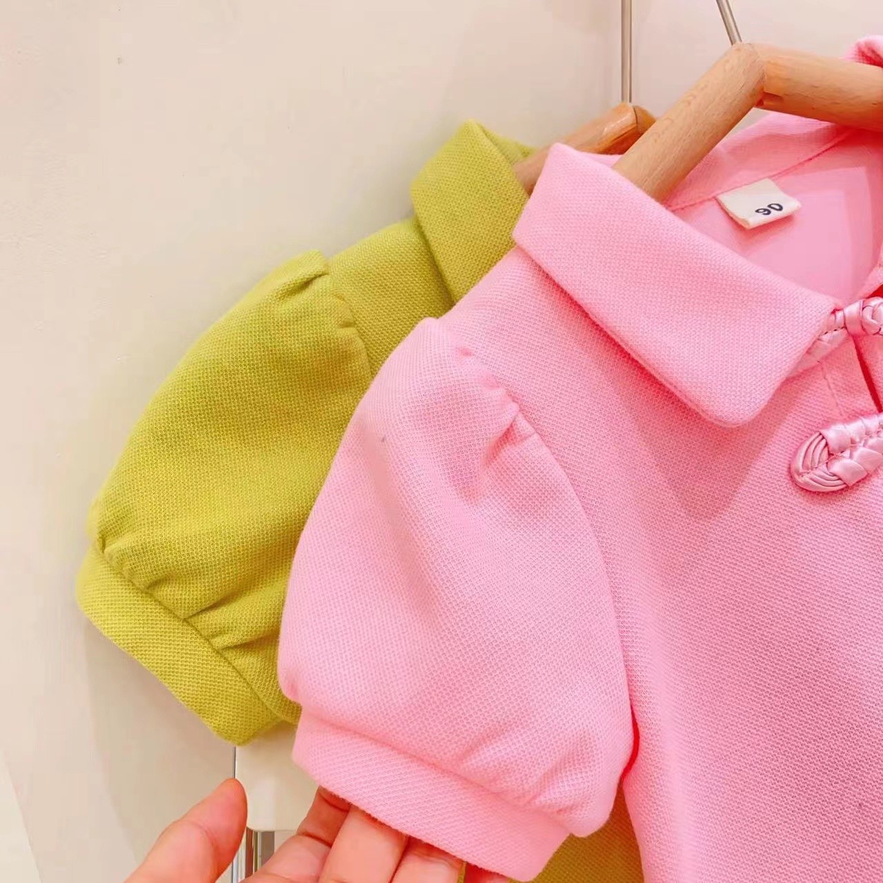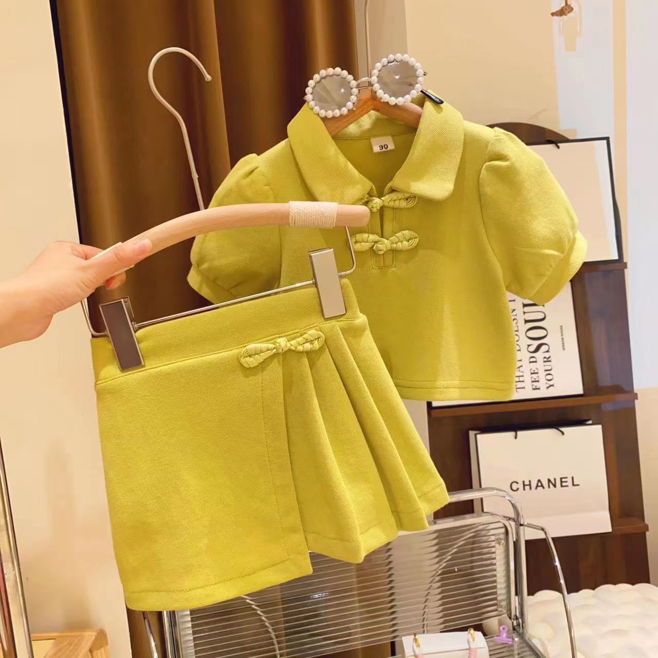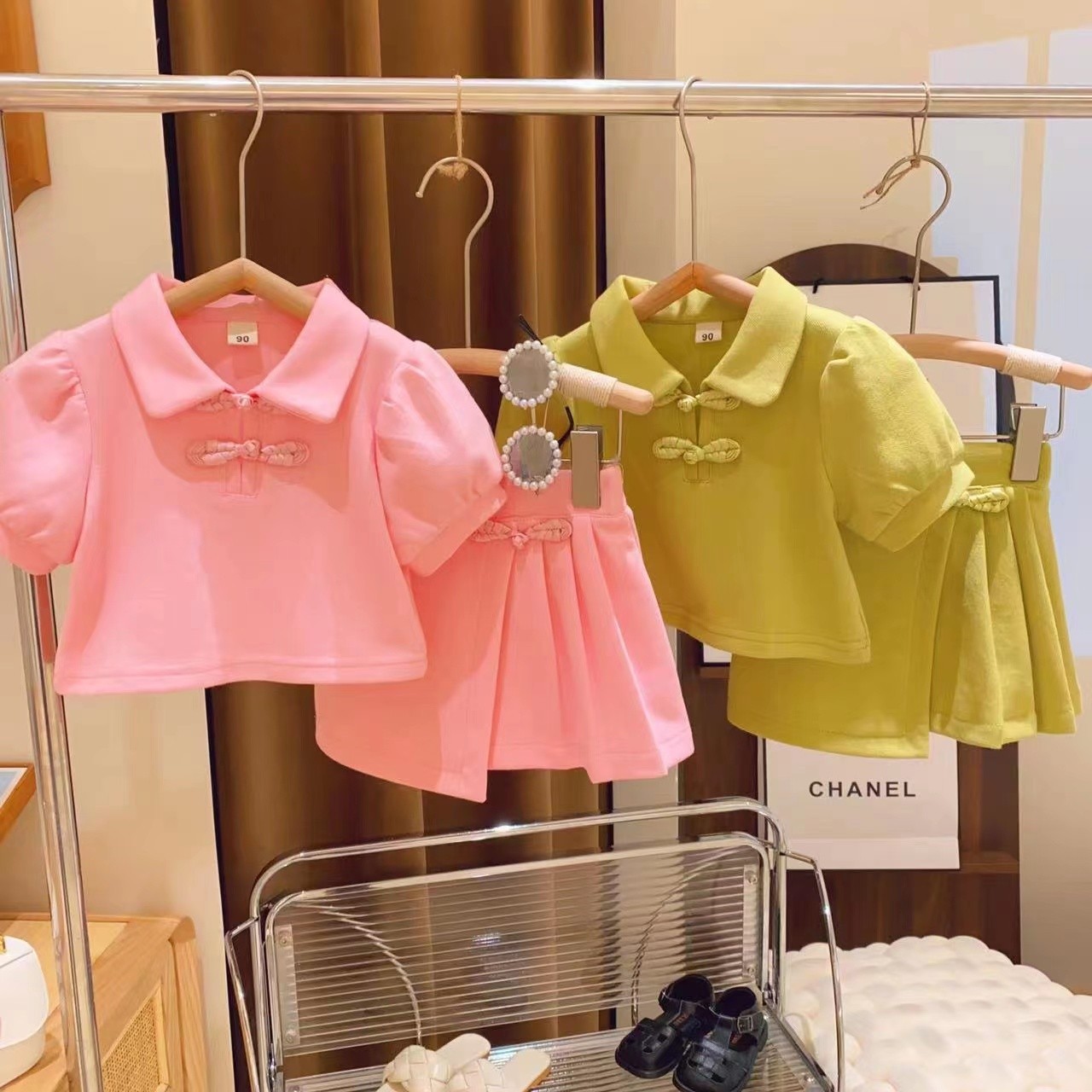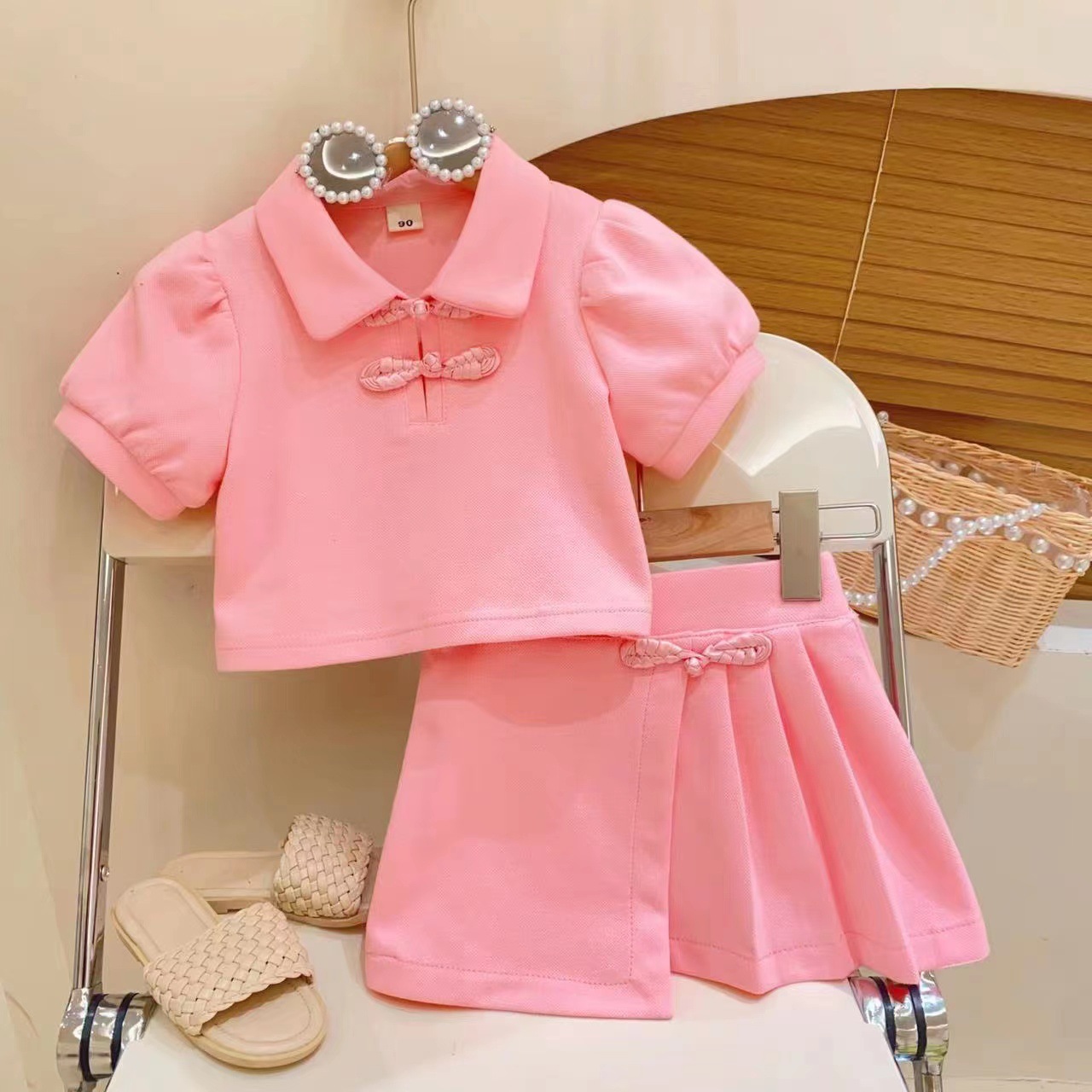 新品女童搭扣泡泡短袖翻领外套洋气短裙两件套2025夏装