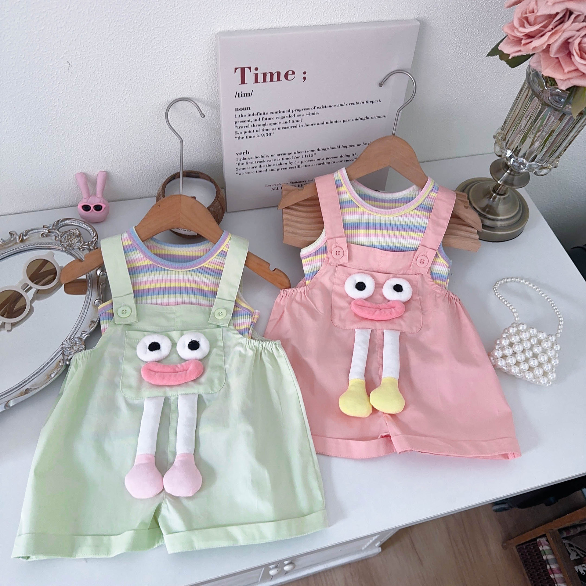 女童夏季2025新款小女孩休闲可爱卡通彩虹短袖背带裤两件套