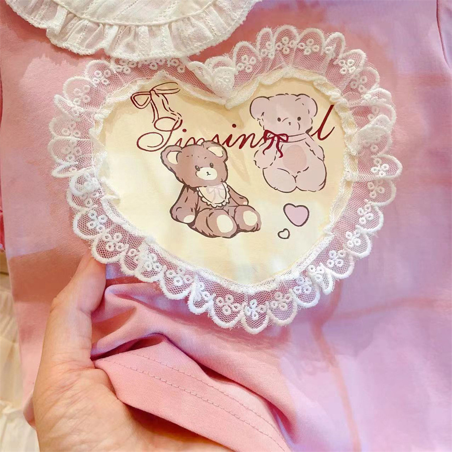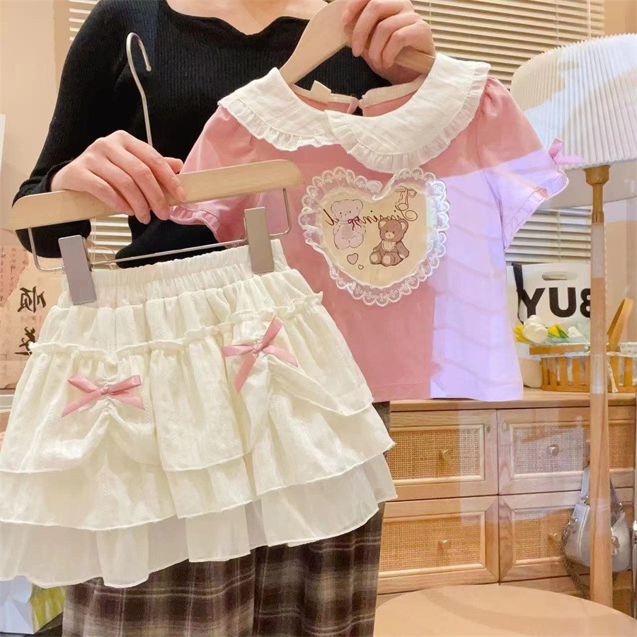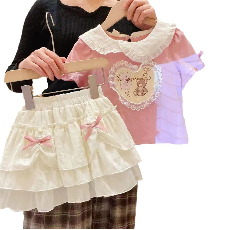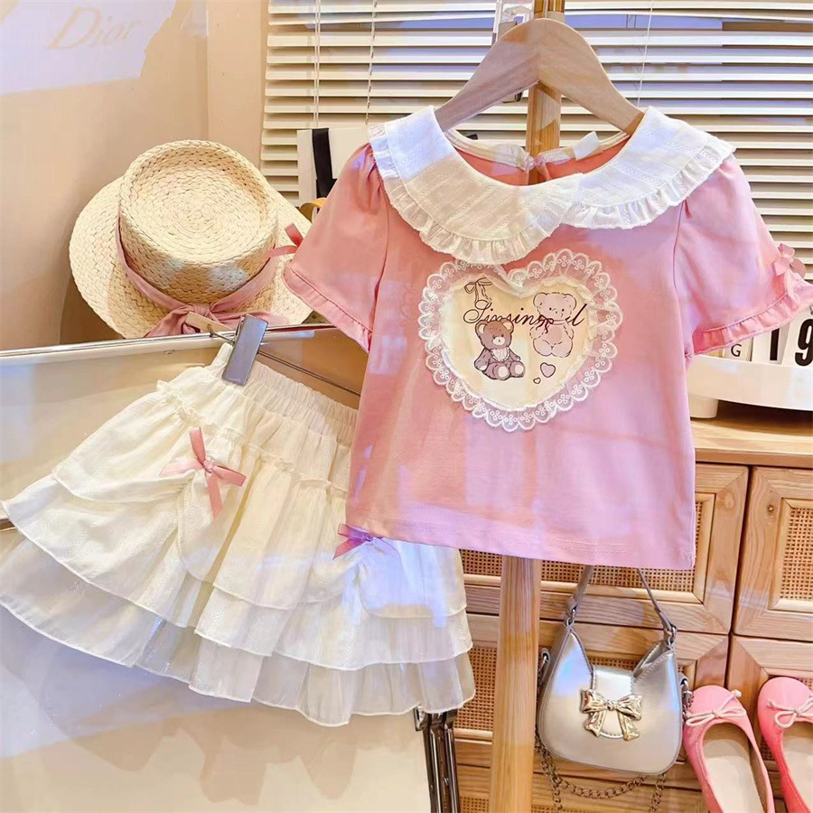 新品粉色短袖t恤短裙套装女童卡通上衣蛋糕裙夏天中小童两件套