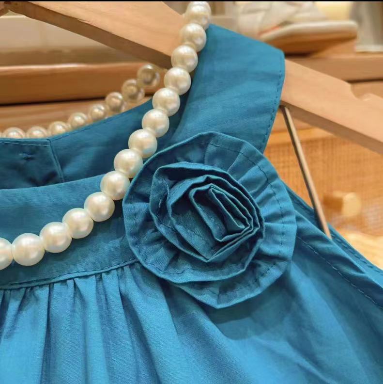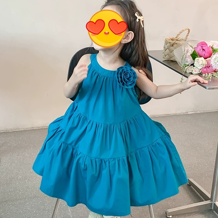 蓝色立体花朵吊带裙