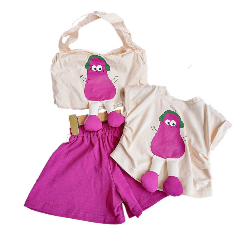 新品2025女童短袖套装夏季新款洋气女孩卡通T恤短裤两件套