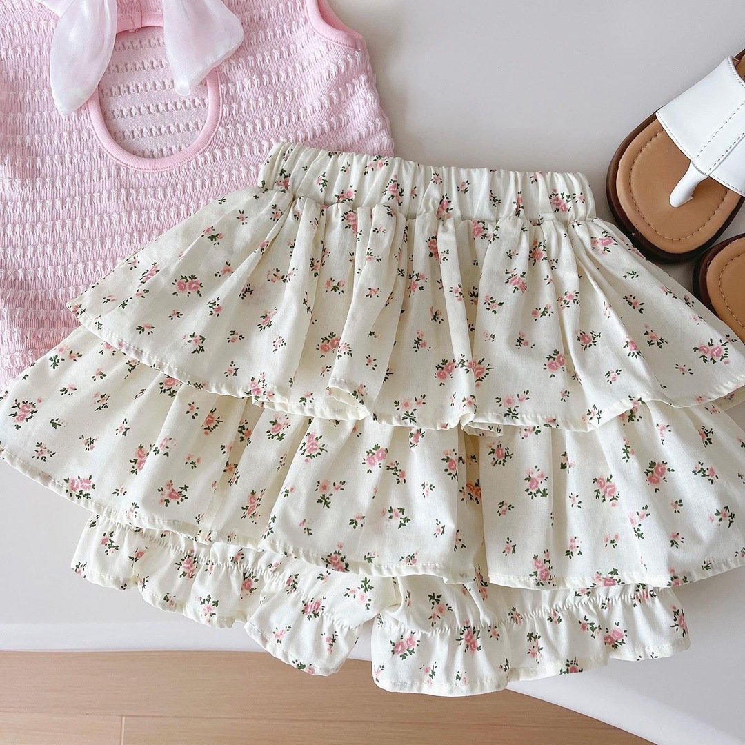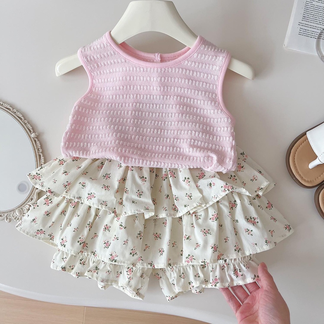 套装【粉色背心+碎花裙裤】