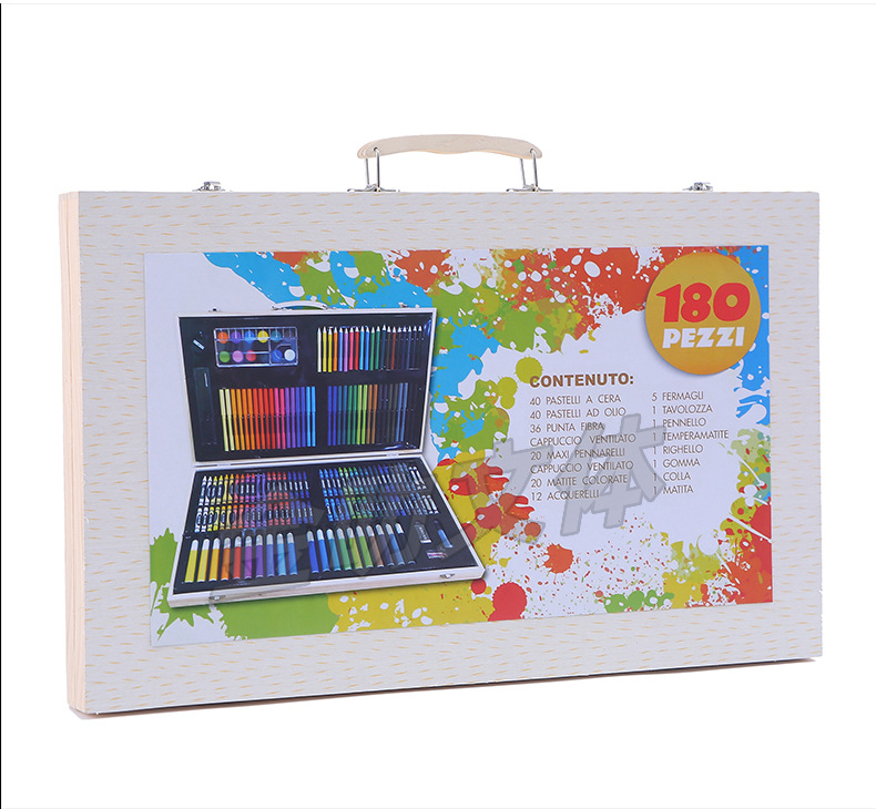 180件木盒水彩笔套装少儿启蒙绘画学生美术用品画笔工厂