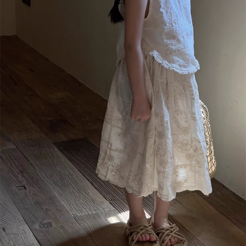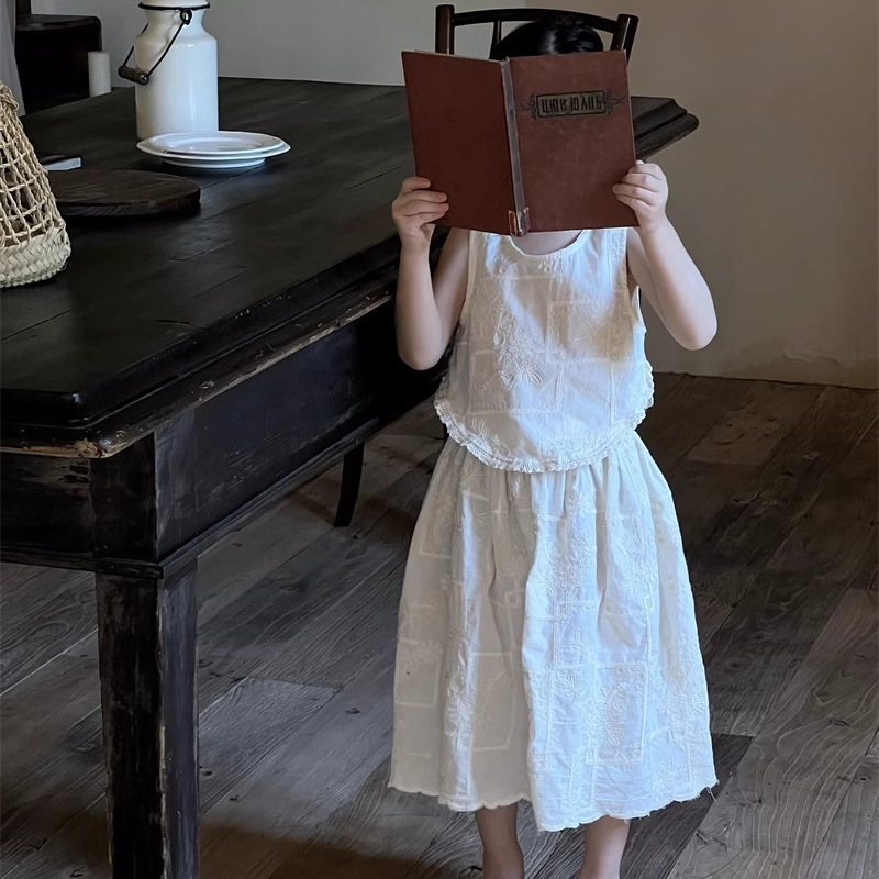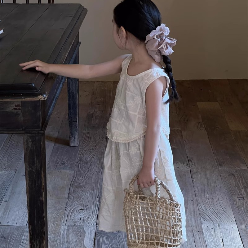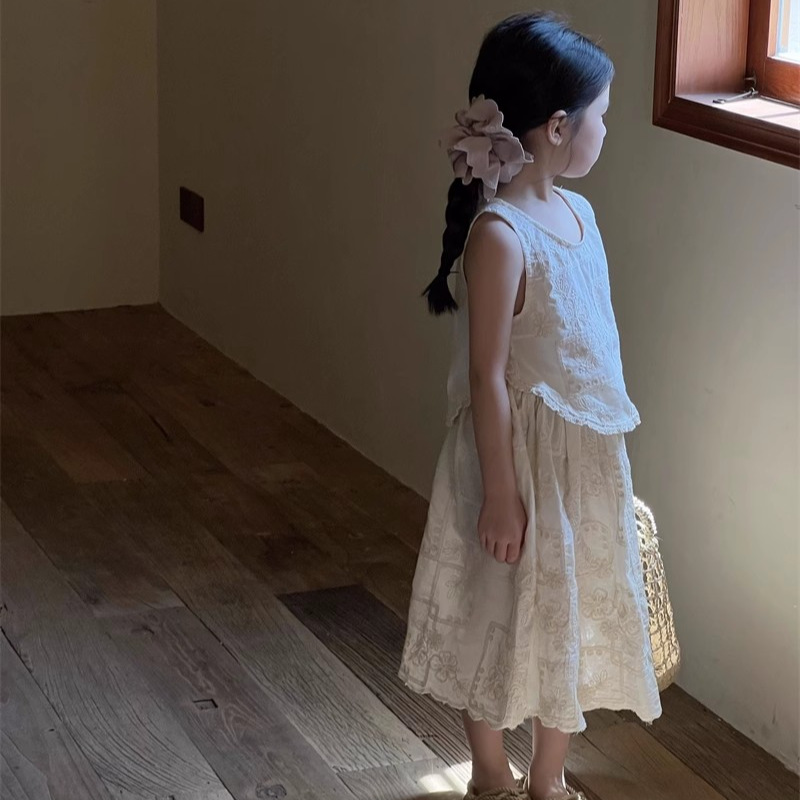 女童韩国刺绣套装半裙2025夏装儿童背心裙子宝宝洋气森系女宝童装