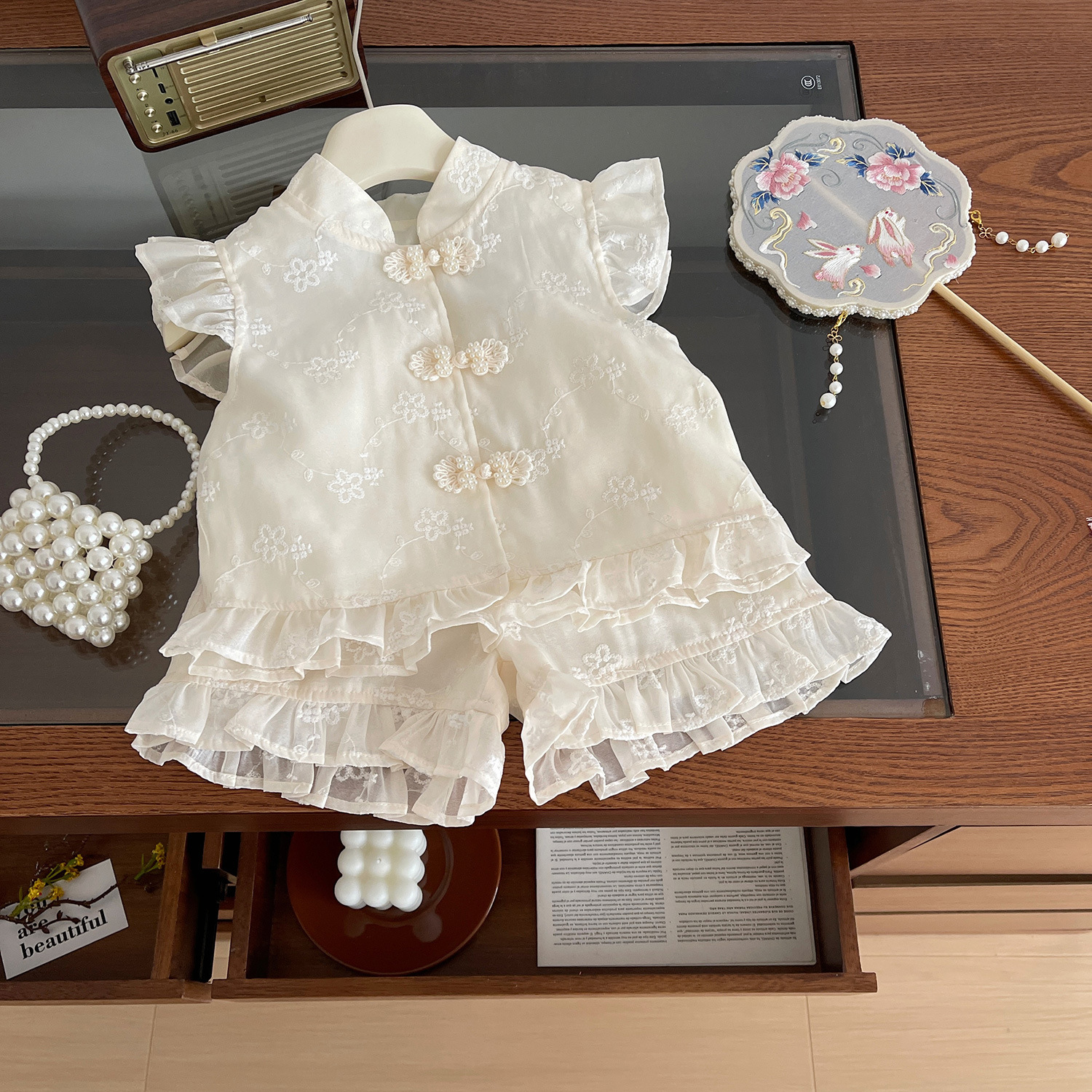 2025复古短袖童装夏季新款女童裤套装 宝宝夏天清爽中小童两件套