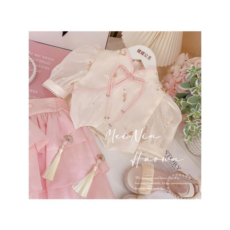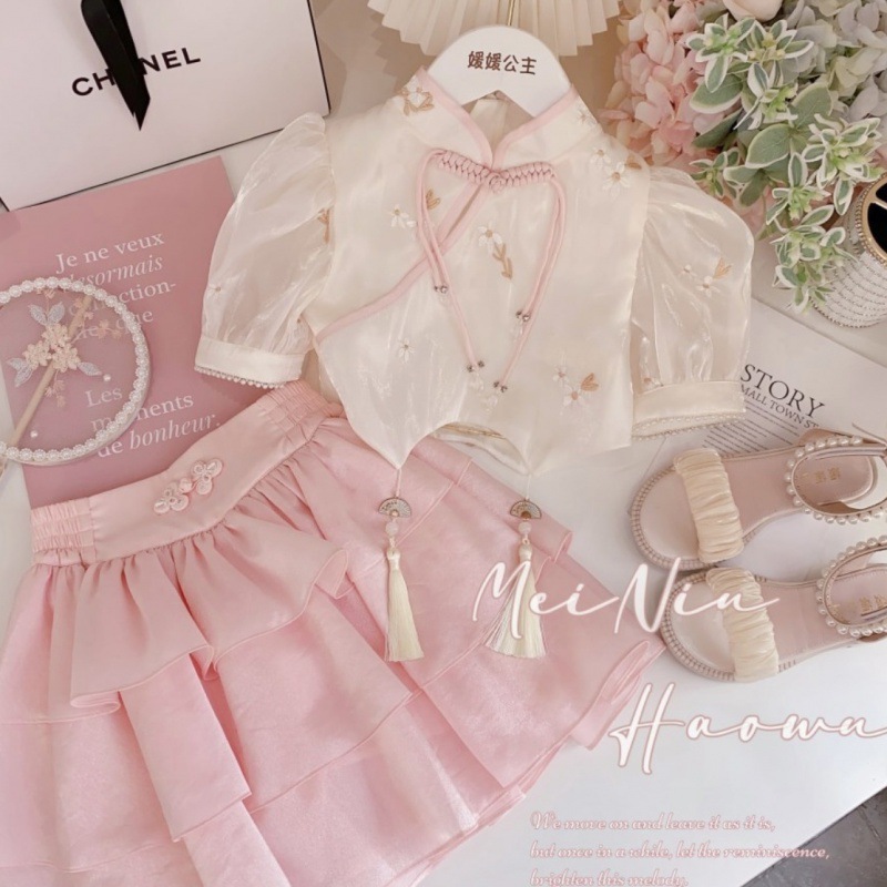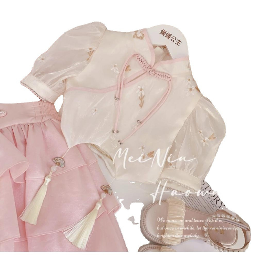 女童新中式国风短袖半身裙套装两件套2025夏装新款国潮风女孩童装