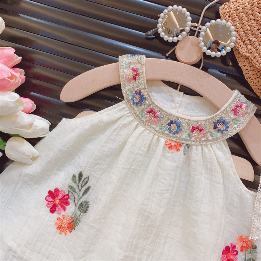 新品洋气学院风女童翻领连衣裙2025夏童装韩版儿童裙子背心裙