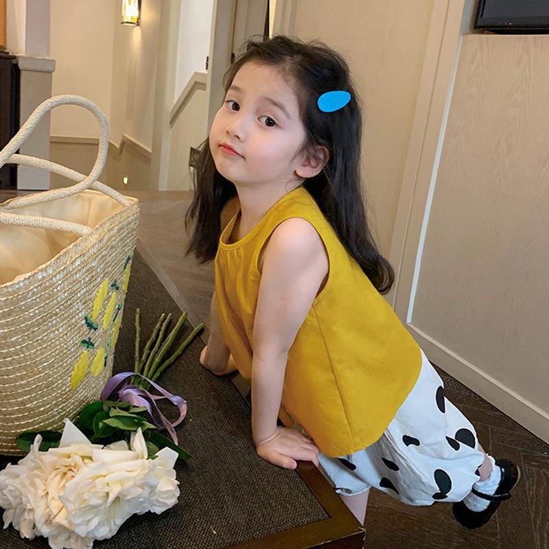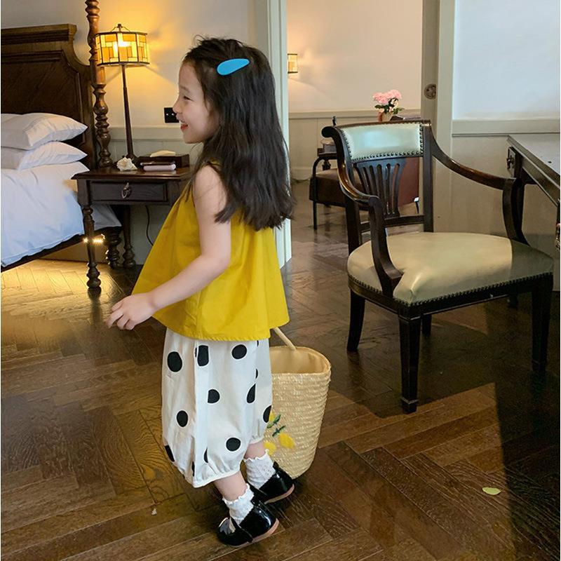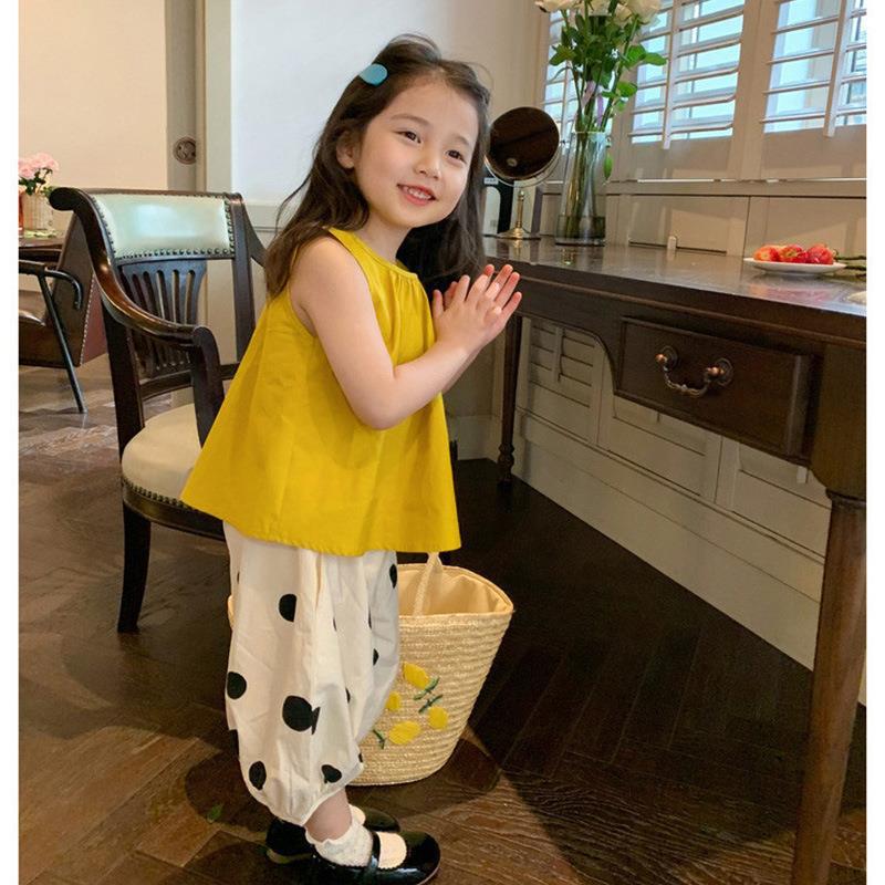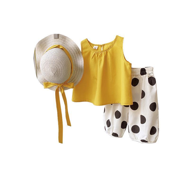 夏款女童黄色无袖上衣+休闲波点裤两件套夏装新款