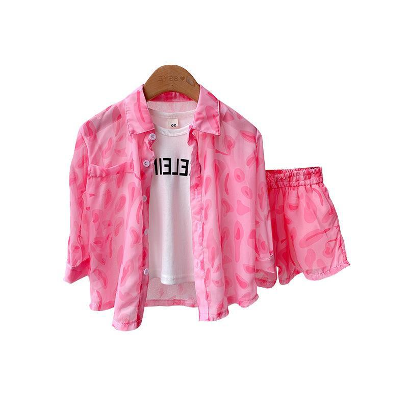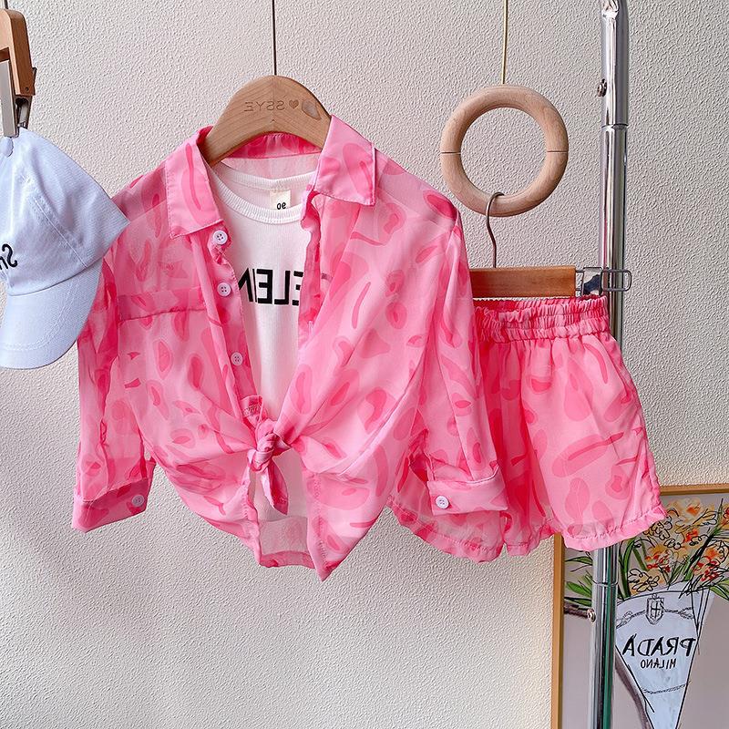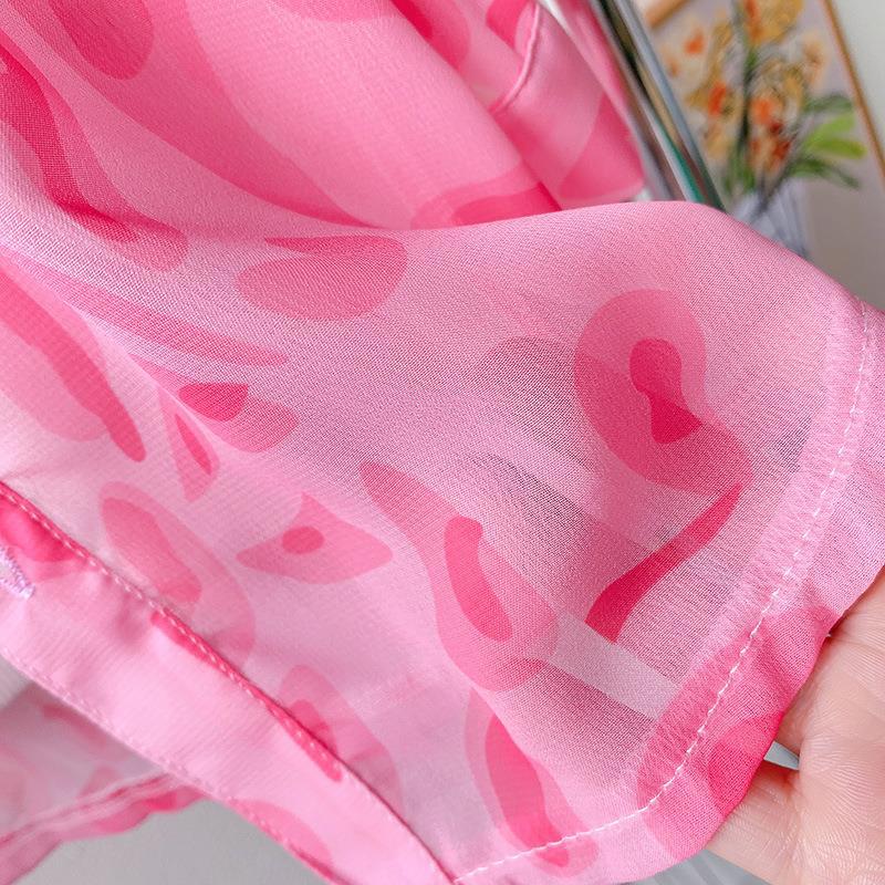 外贸儿童套装2025夏装新品女宝宝豹纹防晒长袖两件套
