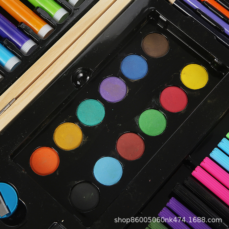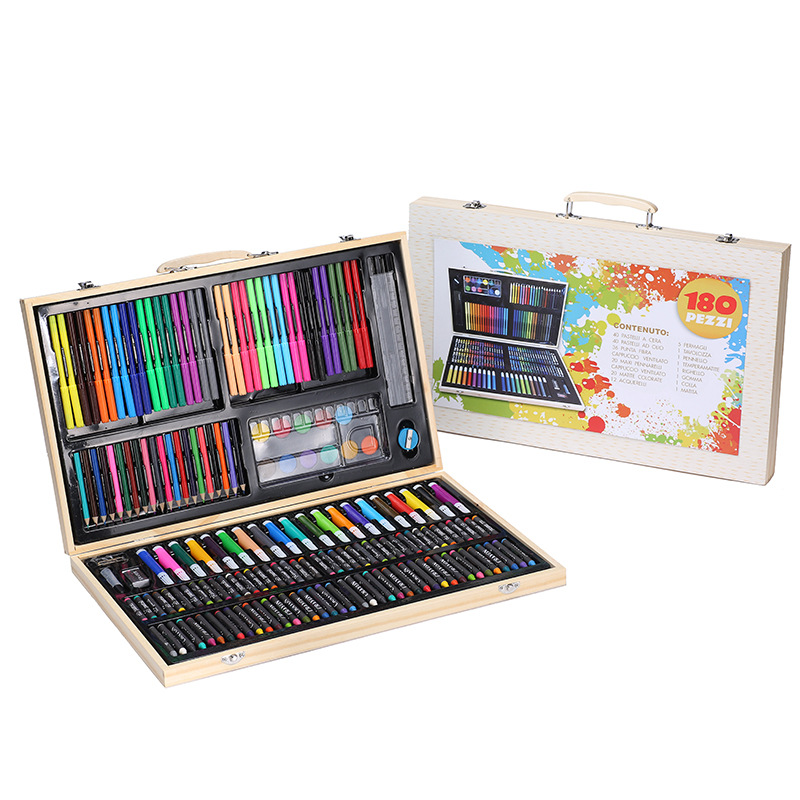 180木盒绘画套装儿童小学生水彩笔套盒美术画画文具用品礼盒