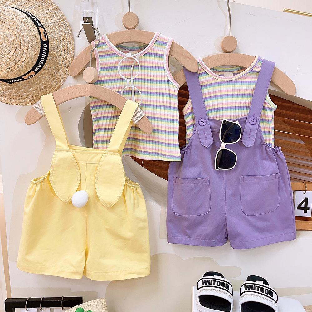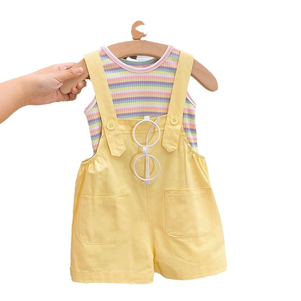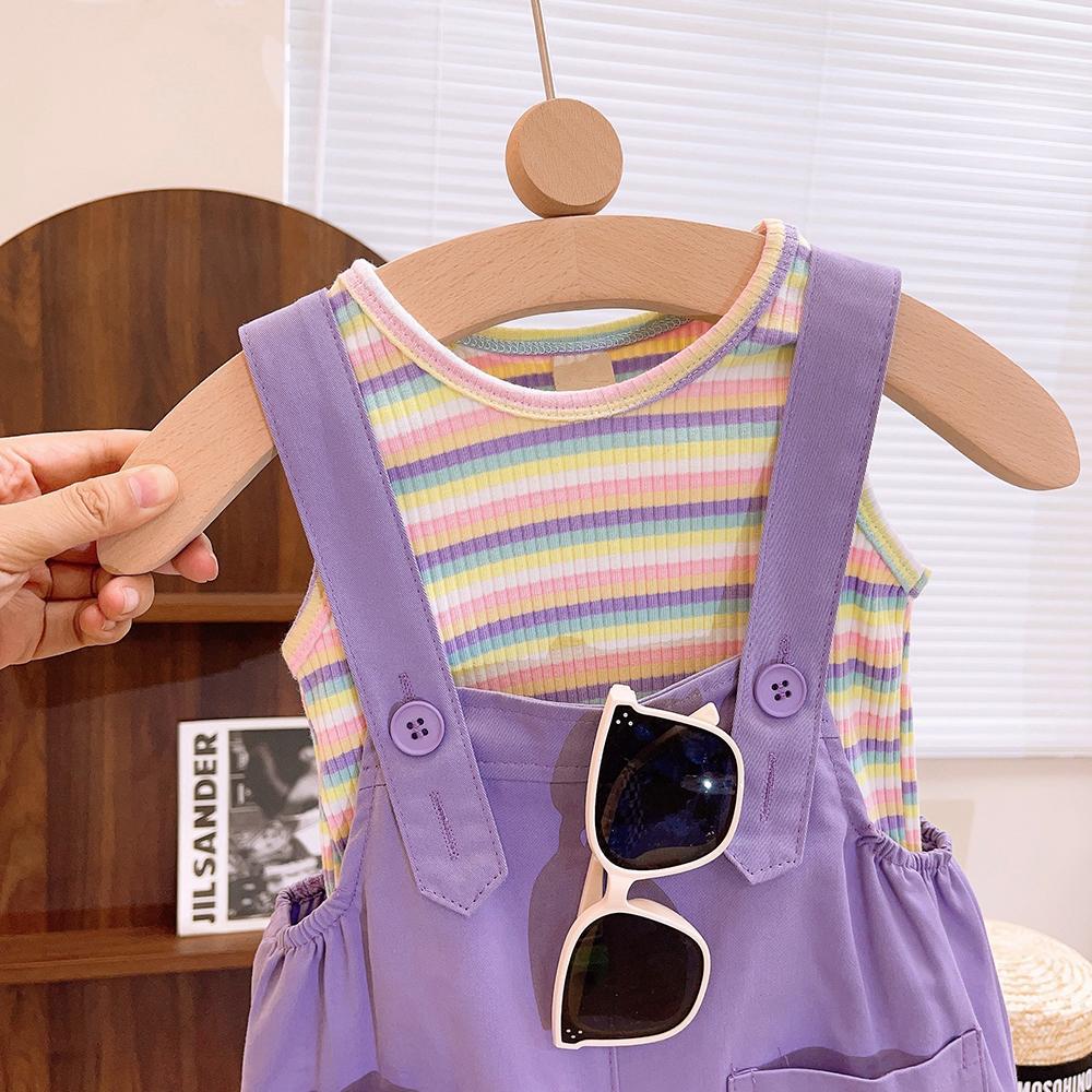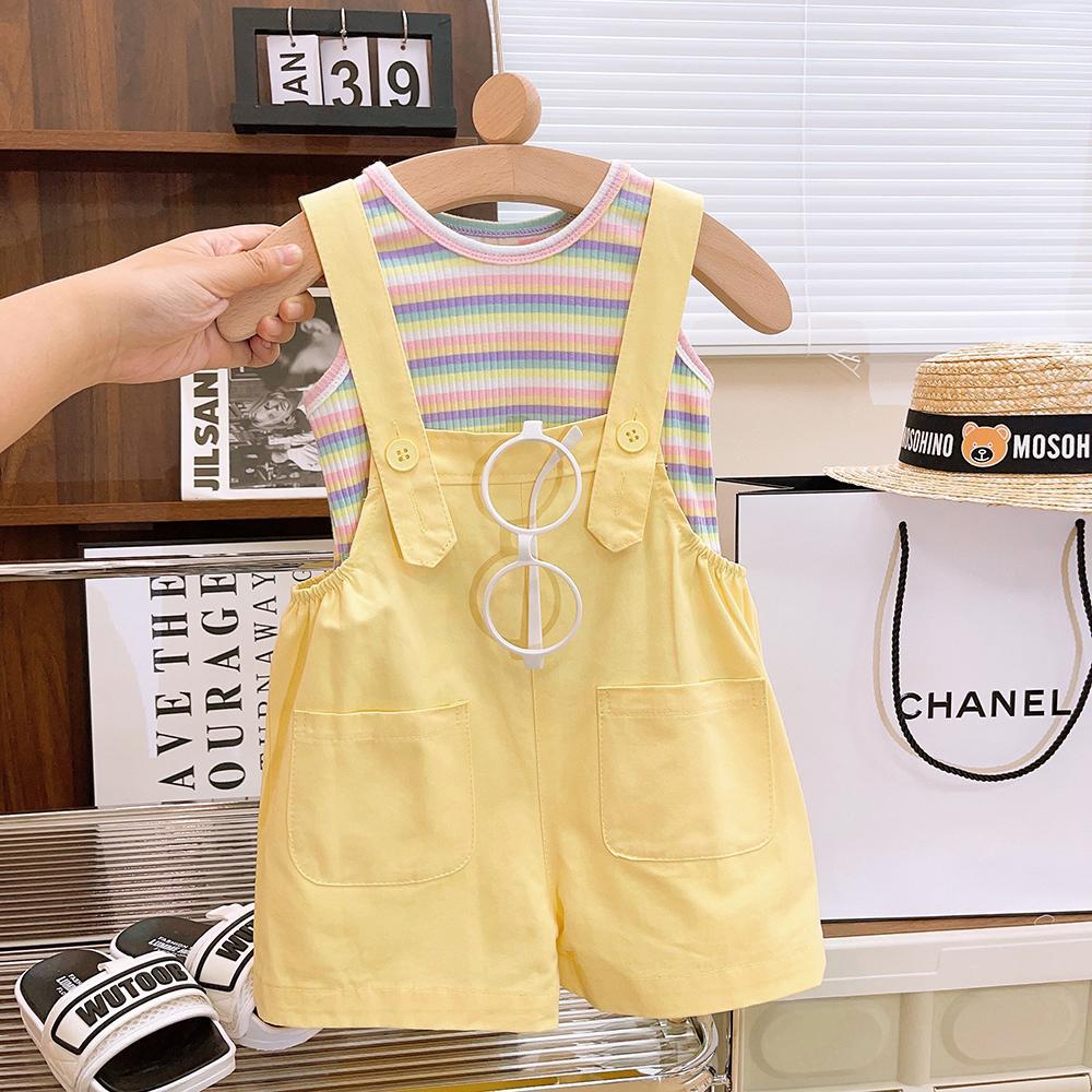 新品女童背带裤套装夏季2025新款时髦女宝宝背带裤可爱两件套