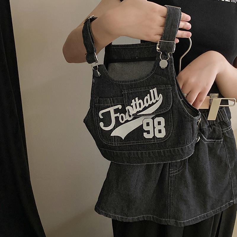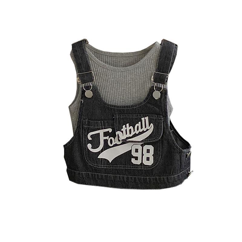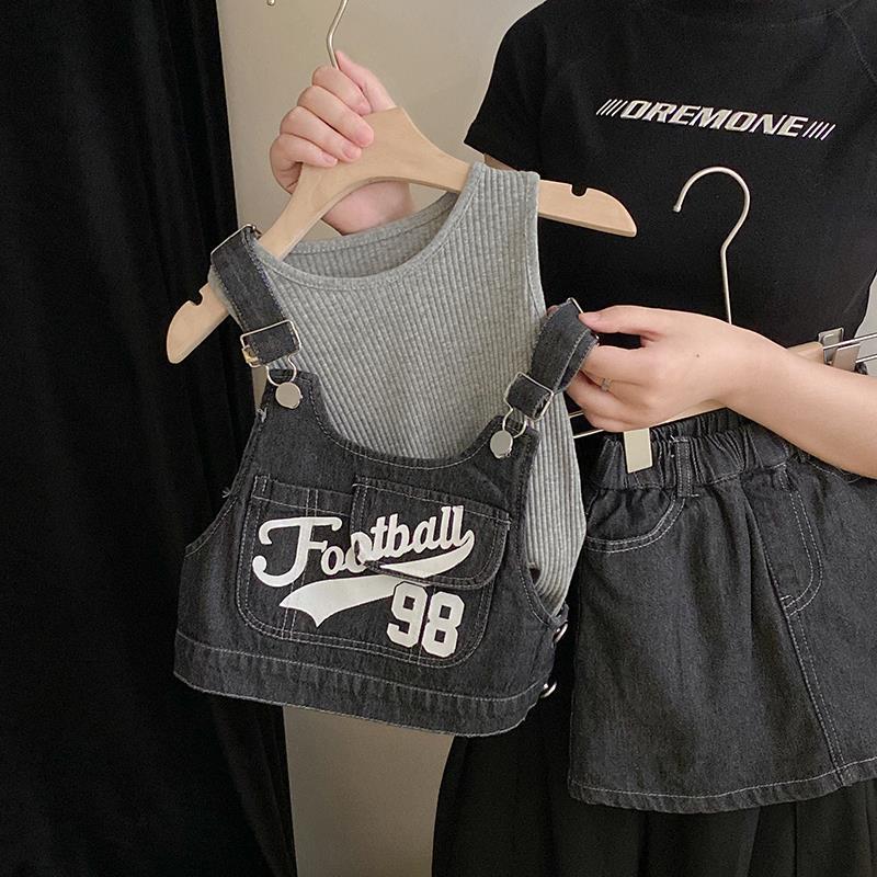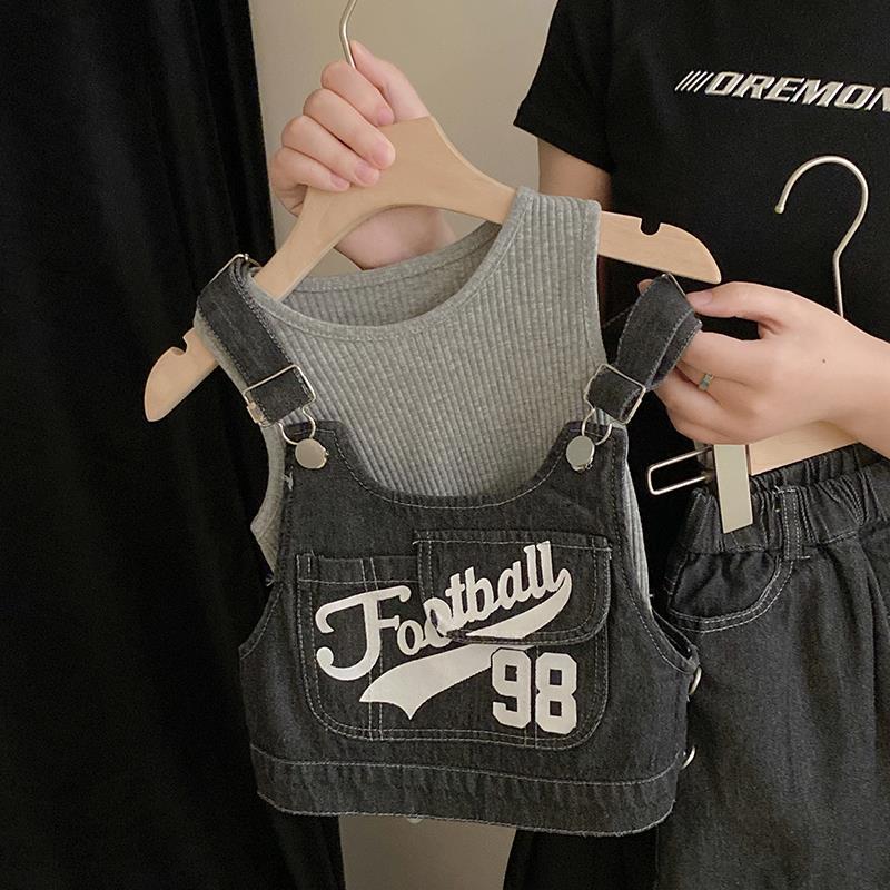 新品2025夏季两件套女童无袖针织背心时髦牛仔吊带衫短裤套装