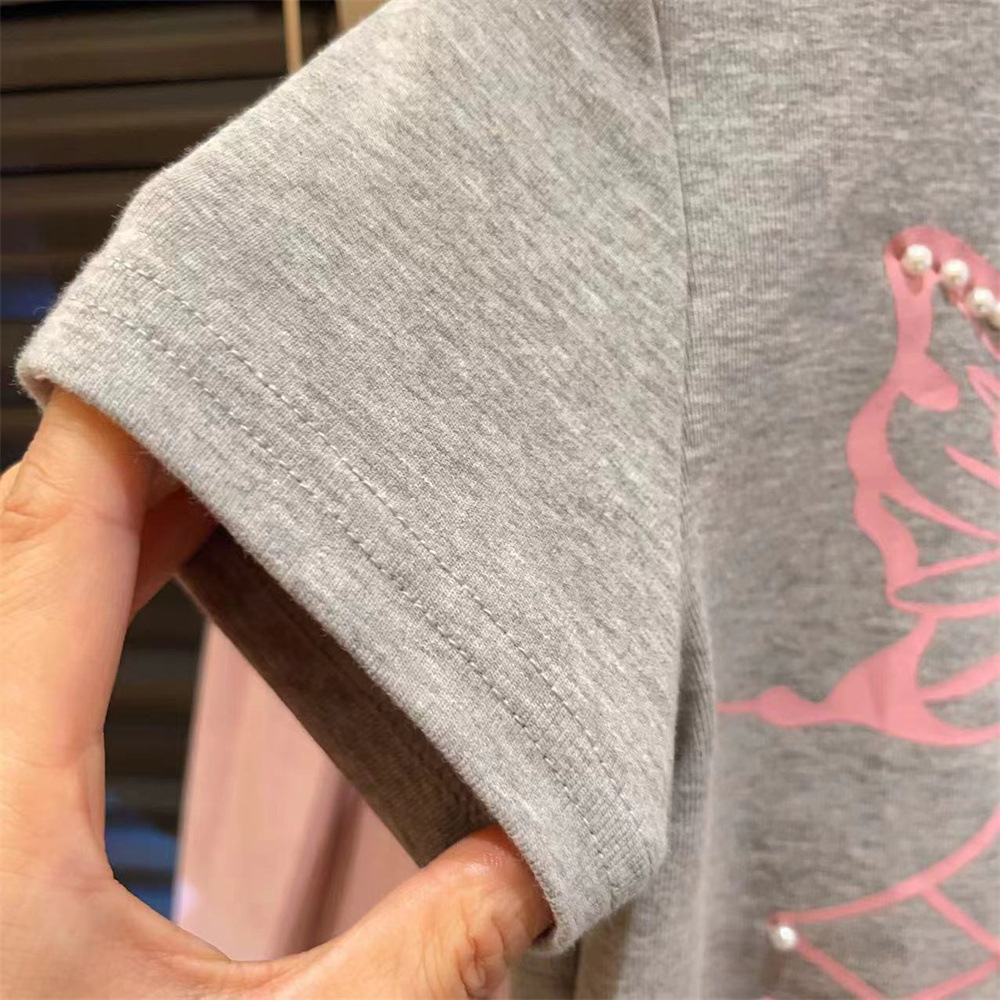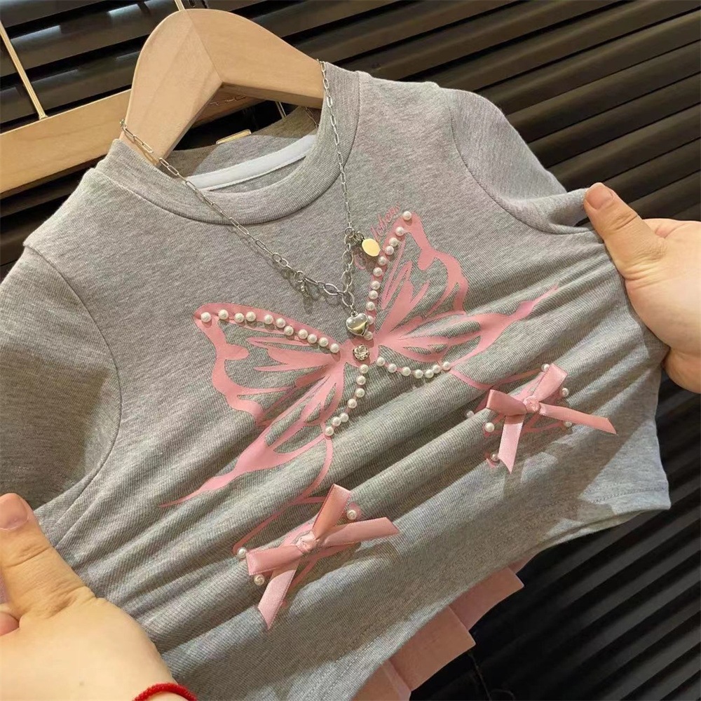 新品女童短袖套装2025新款中小童蝴蝶结T恤蛋糕裙中小童两件套