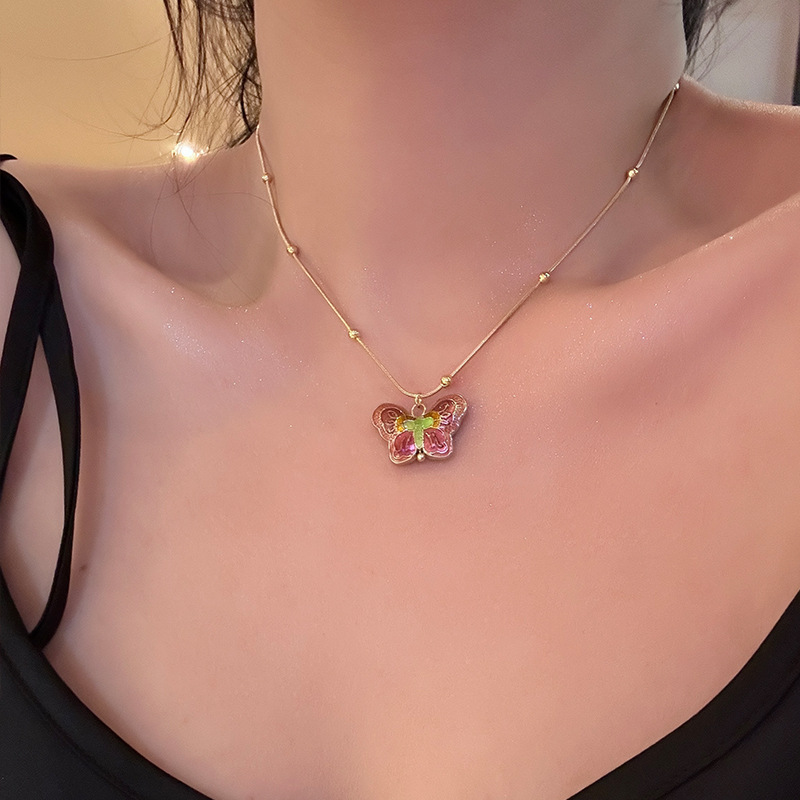 珐琅滴釉夏季彩色蝴蝶项链女小众复古高级感短款颈链民族风锁骨链
