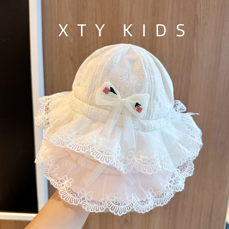 婴儿帽子夏季韩版渔夫帽可爱公主花边蝴蝶结洋气宝宝遮阳盆帽女童