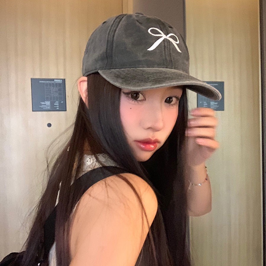 ins韩国蝴蝶结遮阳棒球帽复古做旧短檐休闲时尚百搭防晒鸭舌帽女