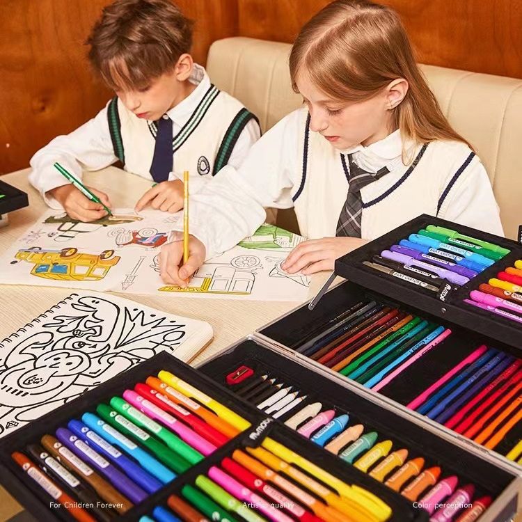 mobee绘画套装儿童水彩笔蜡笔礼盒美术画笔工具箱小学生生日礼物