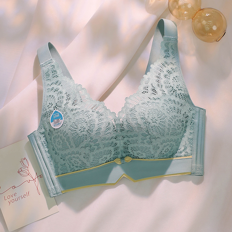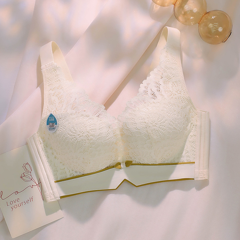 新款调整型乳胶文胸手掌型无钢圈蕾丝内衣女小胸聚拢透气收副乳罩