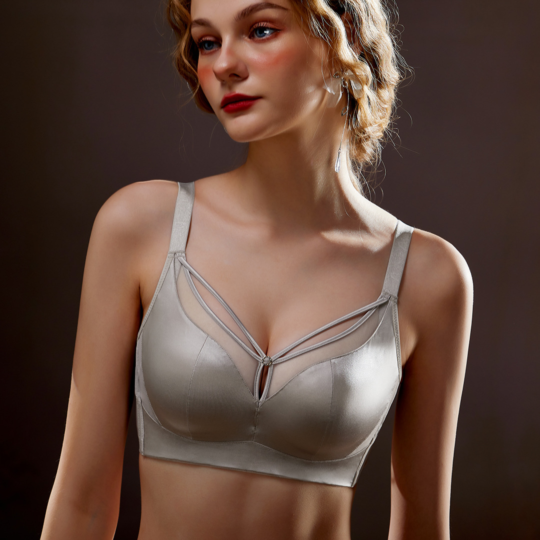 光面文胸小胸聚拢无钢圈透气按摩杯调整型无痕内衣女性感美胸侧收