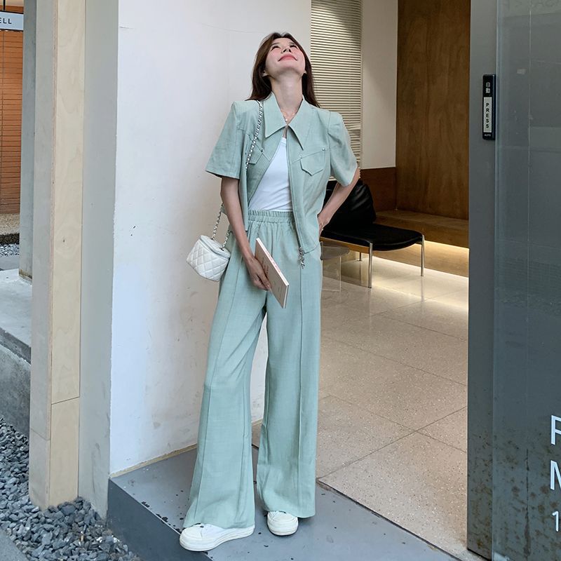 休闲气质套装短袖夏季高腰阔腿裤洋气新款时尚显瘦两件套