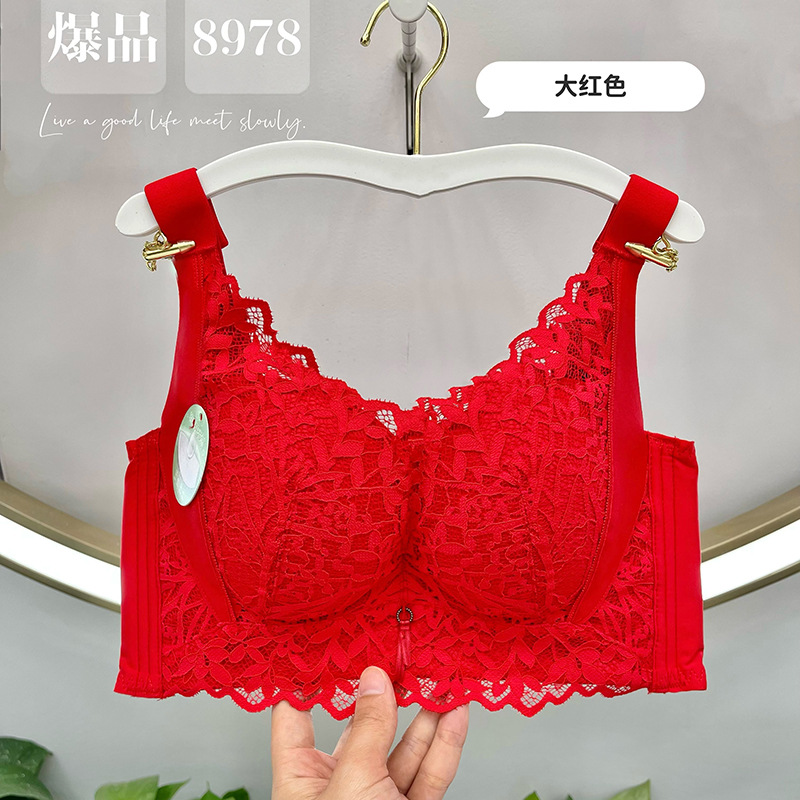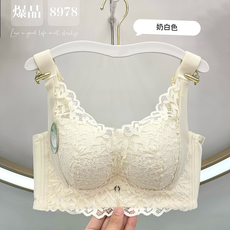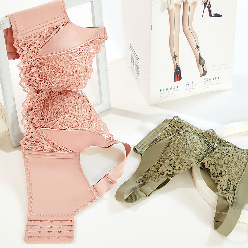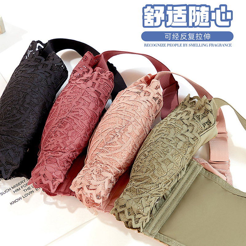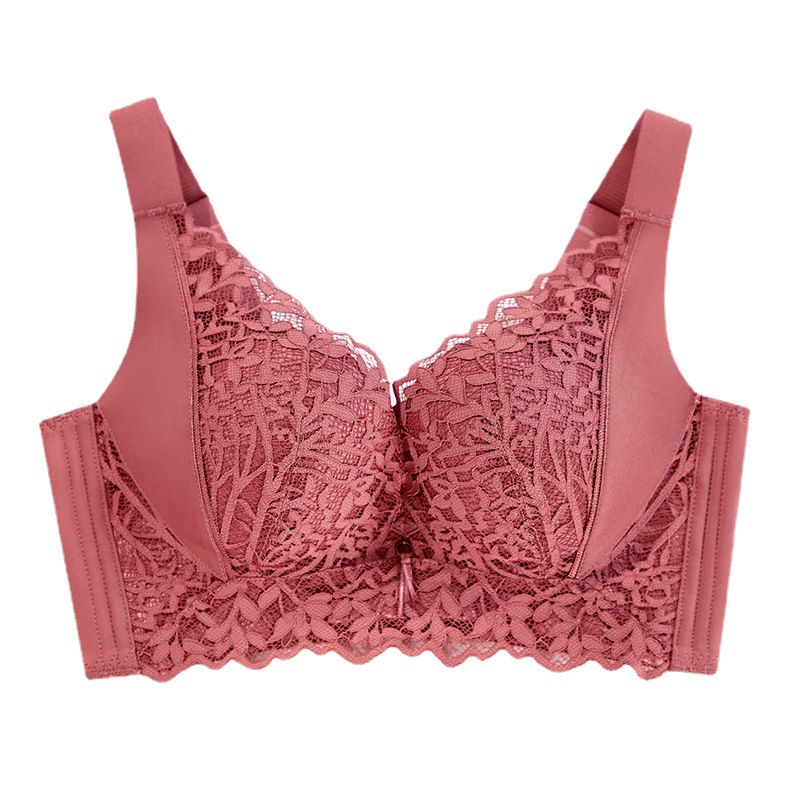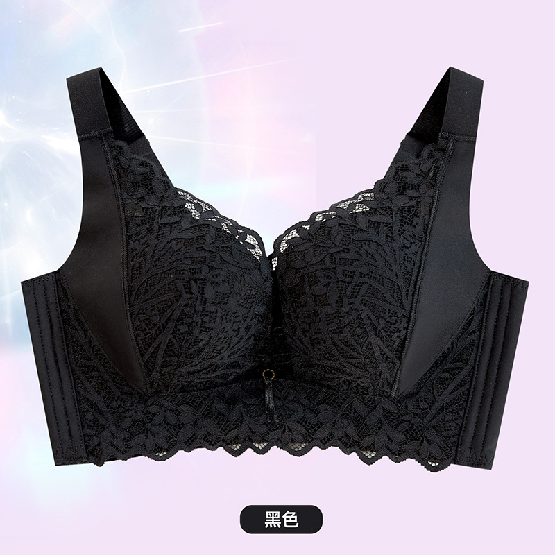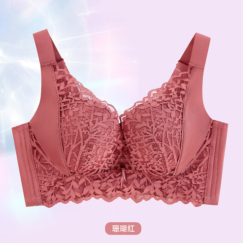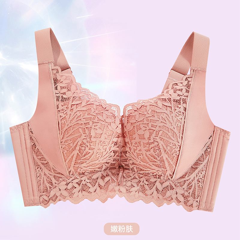 内衣女无钢圈五排扣调整型性感蕾丝舒适聚拢文胸透气侧收副乳胸罩