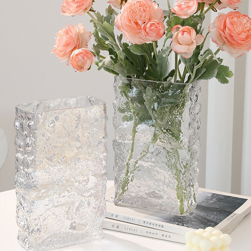 高级感方形冰川玻璃花瓶现代简约玫瑰百合插花器客厅ins装饰摆件