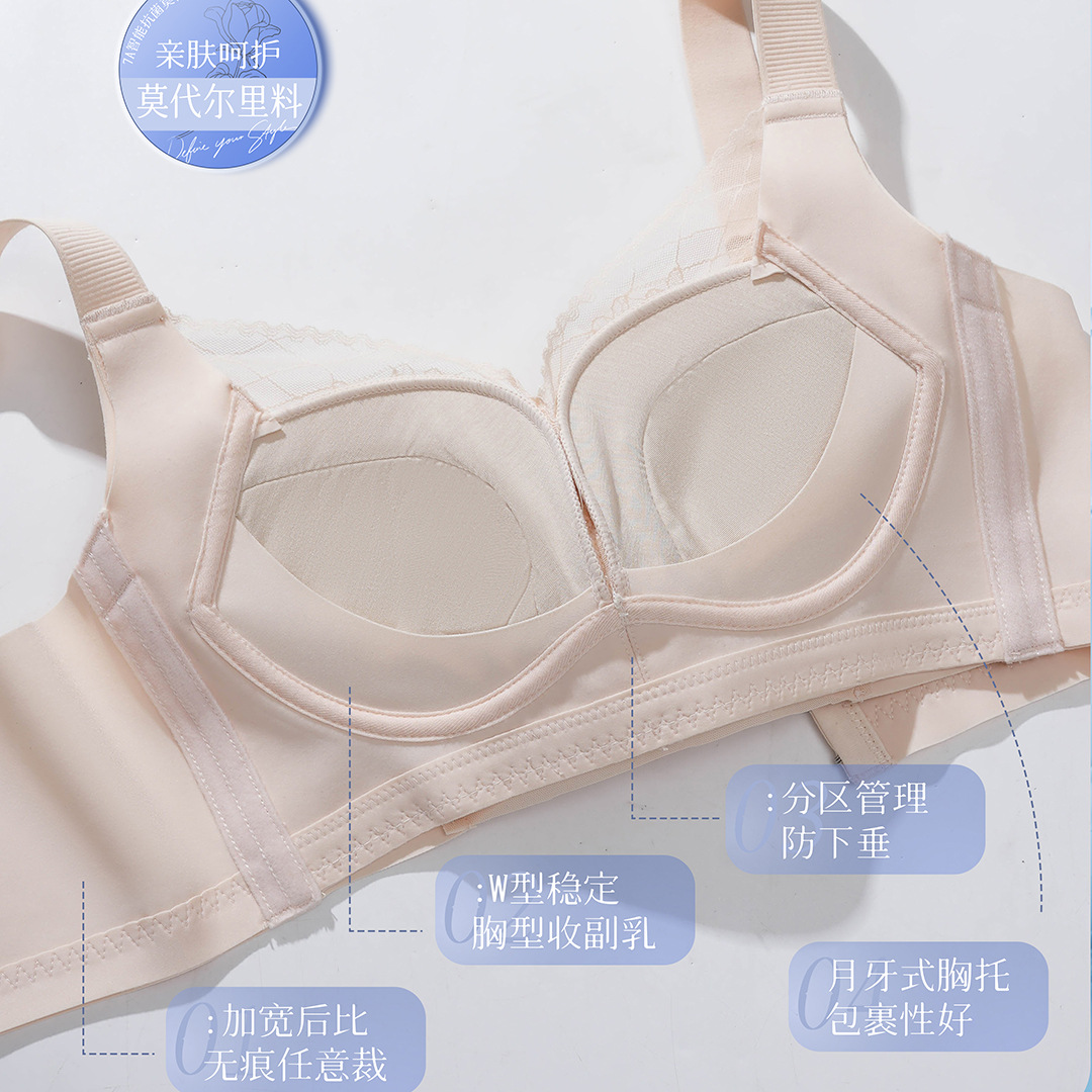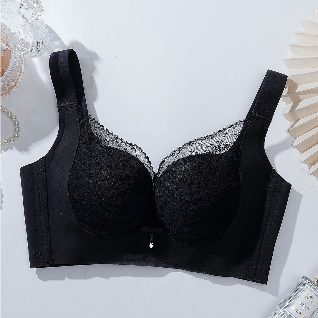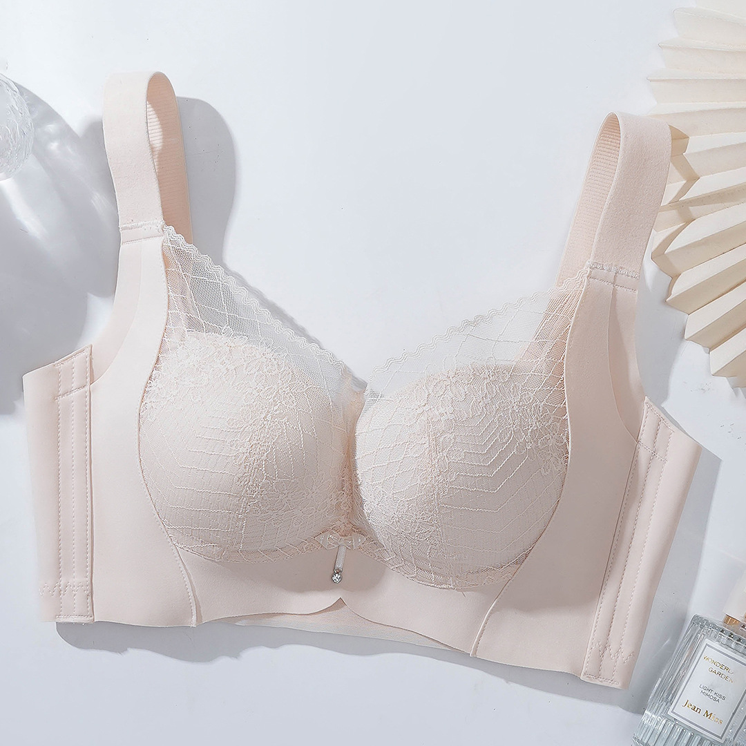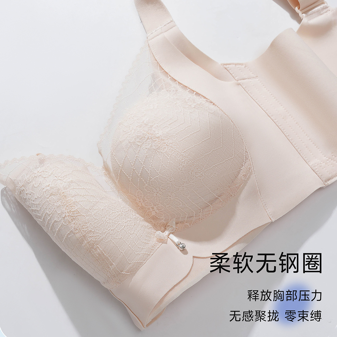 春夏款内衣女小胸聚拢防下垂无钢圈蕾丝无侧骨文胸透调整型收副乳