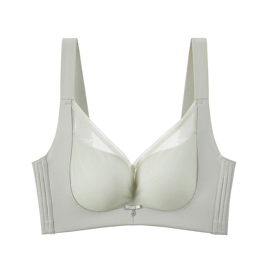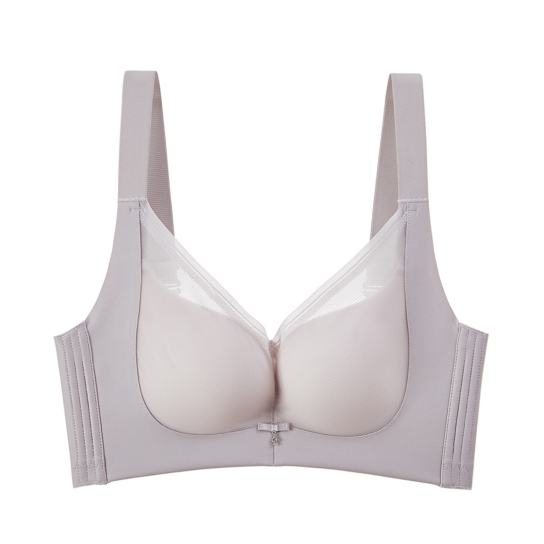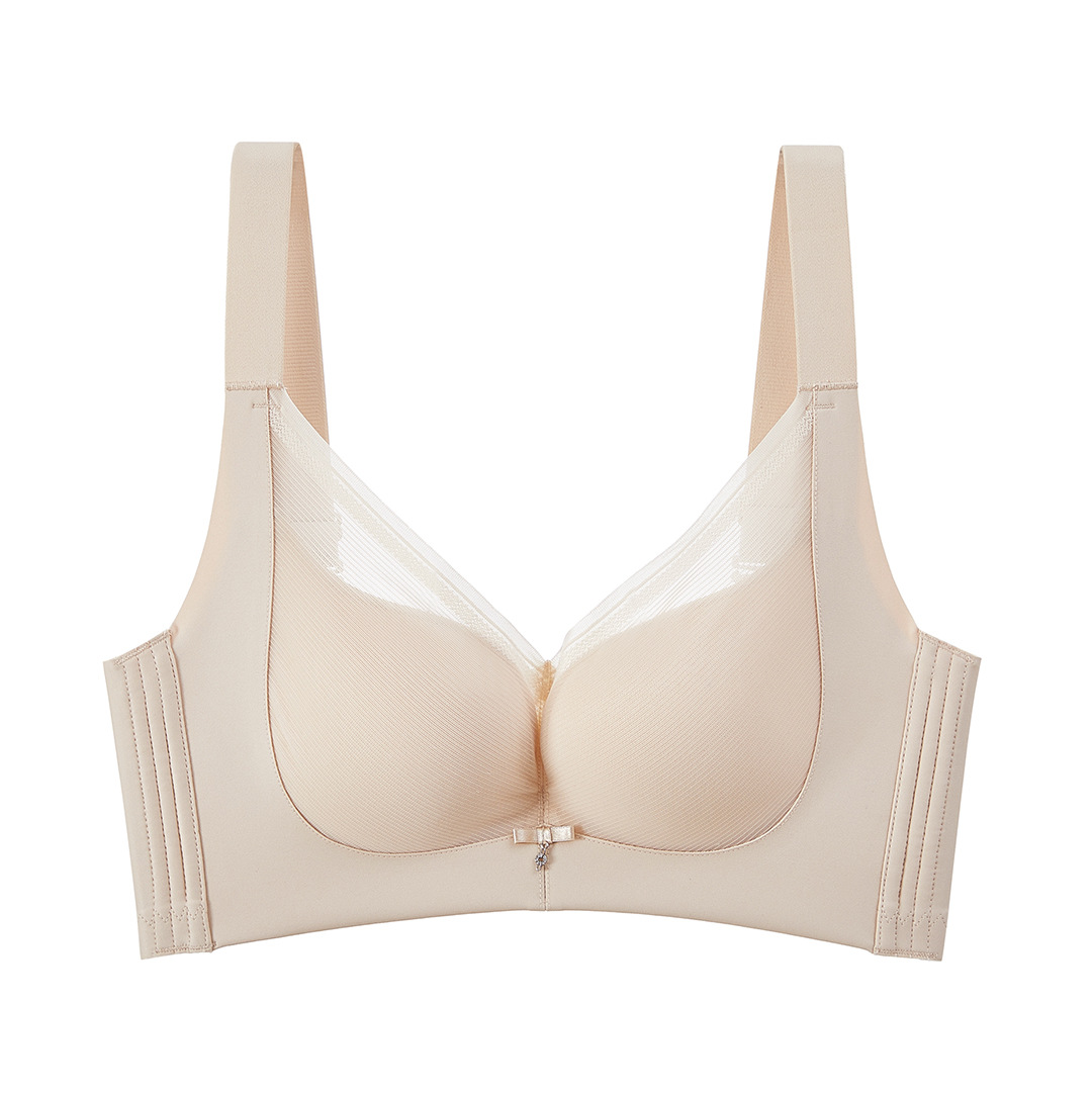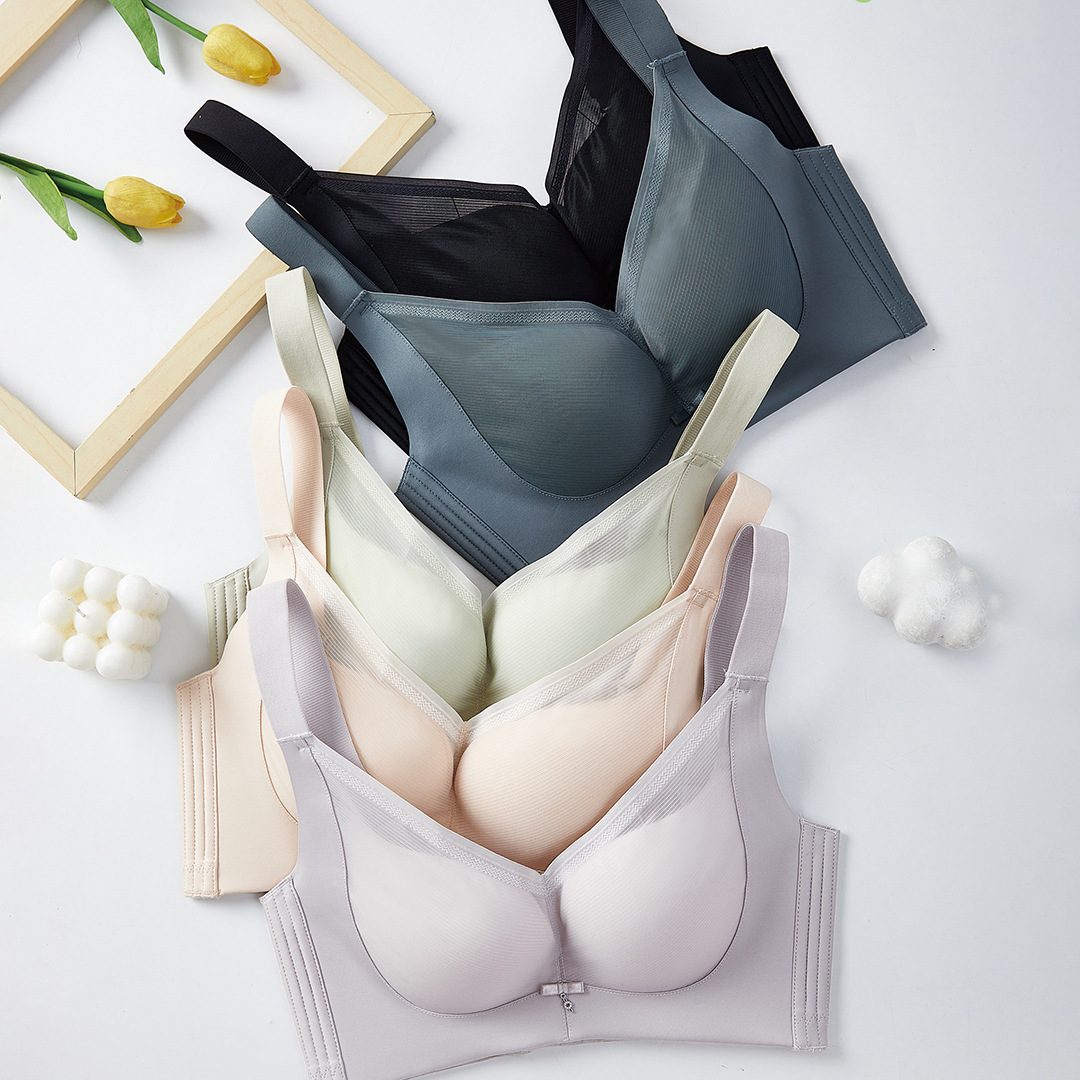 春夏新款大胸显小透气三明治无钢圈薄杯光面内衣女聚拢文胸收副乳