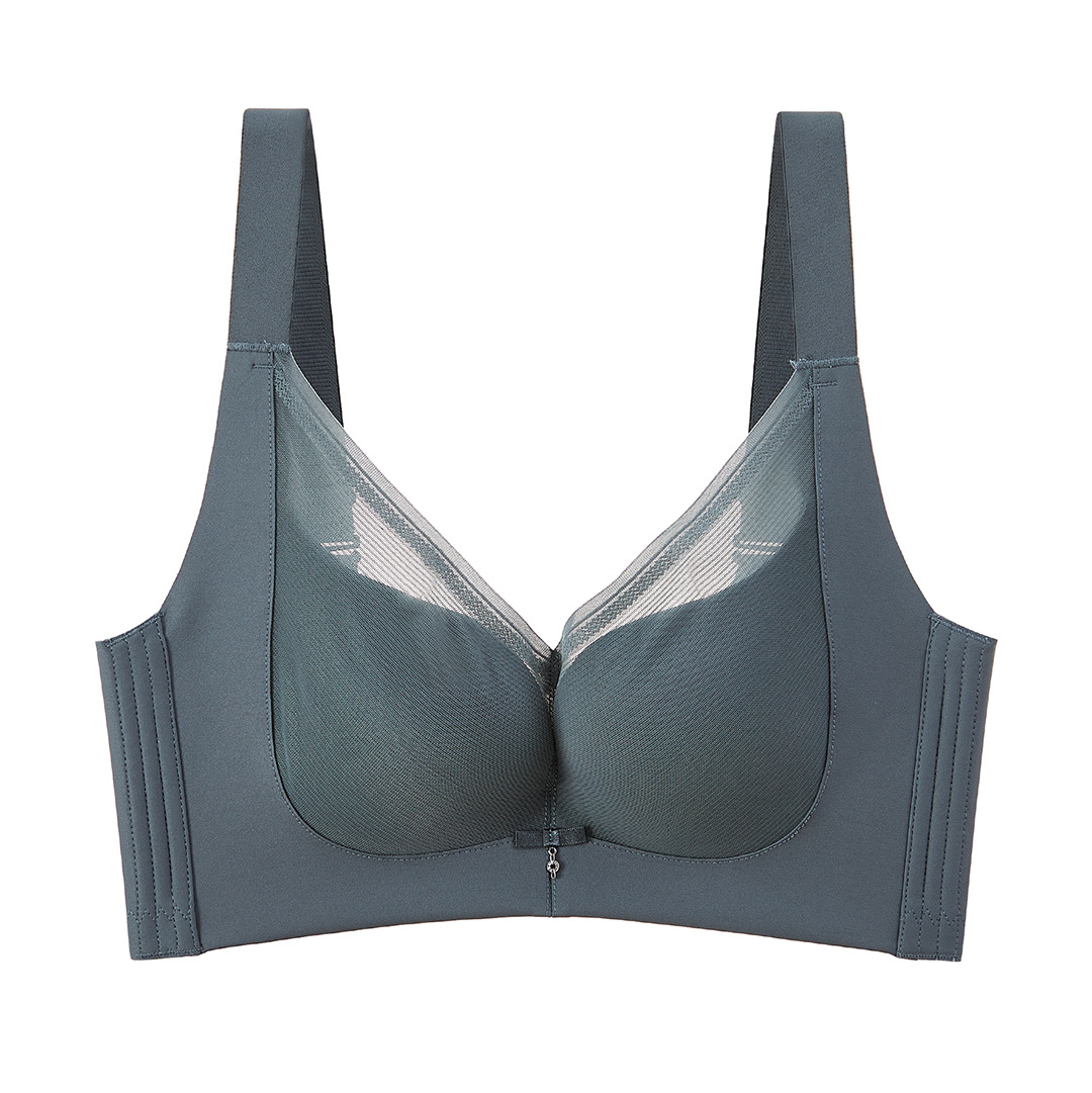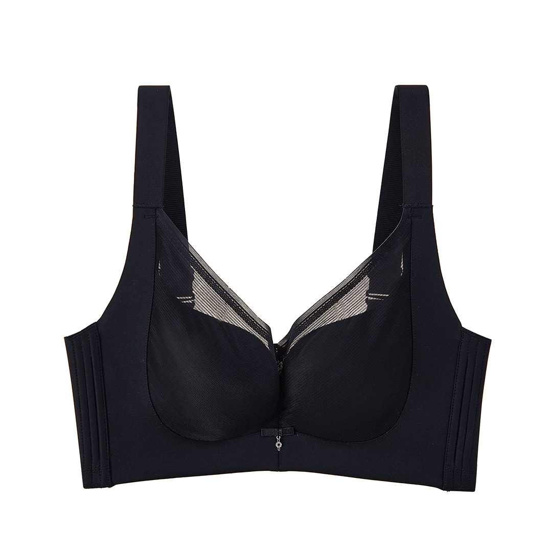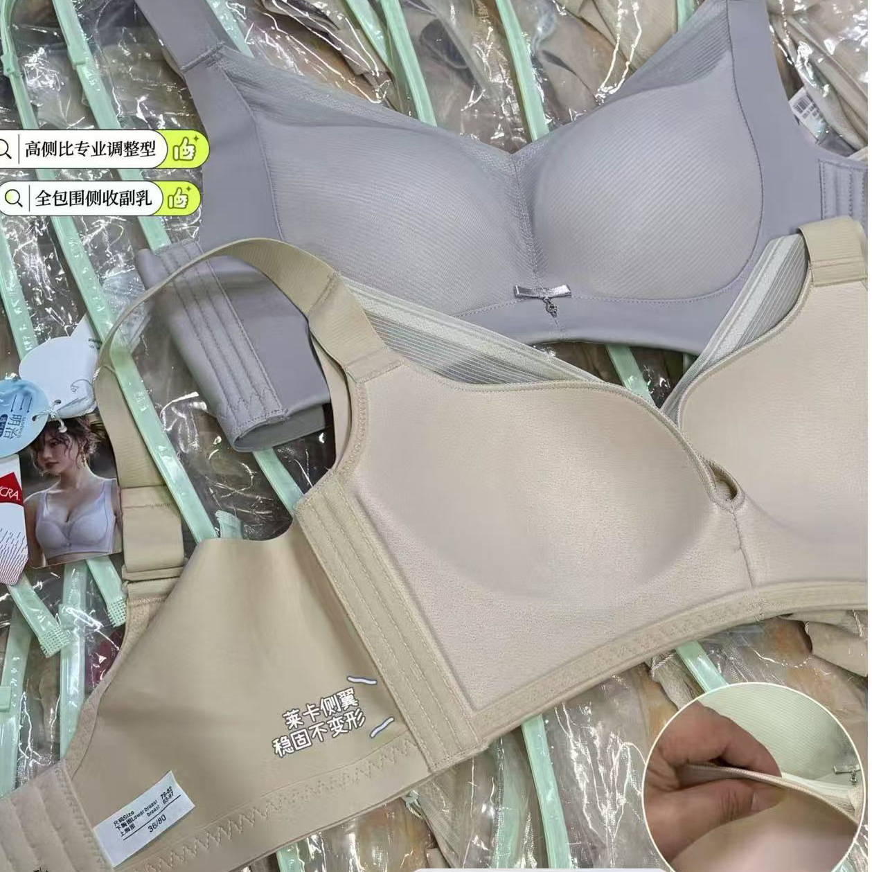 春夏新款大胸显小透气三明治无钢圈薄杯光面内衣女聚拢文胸收副乳