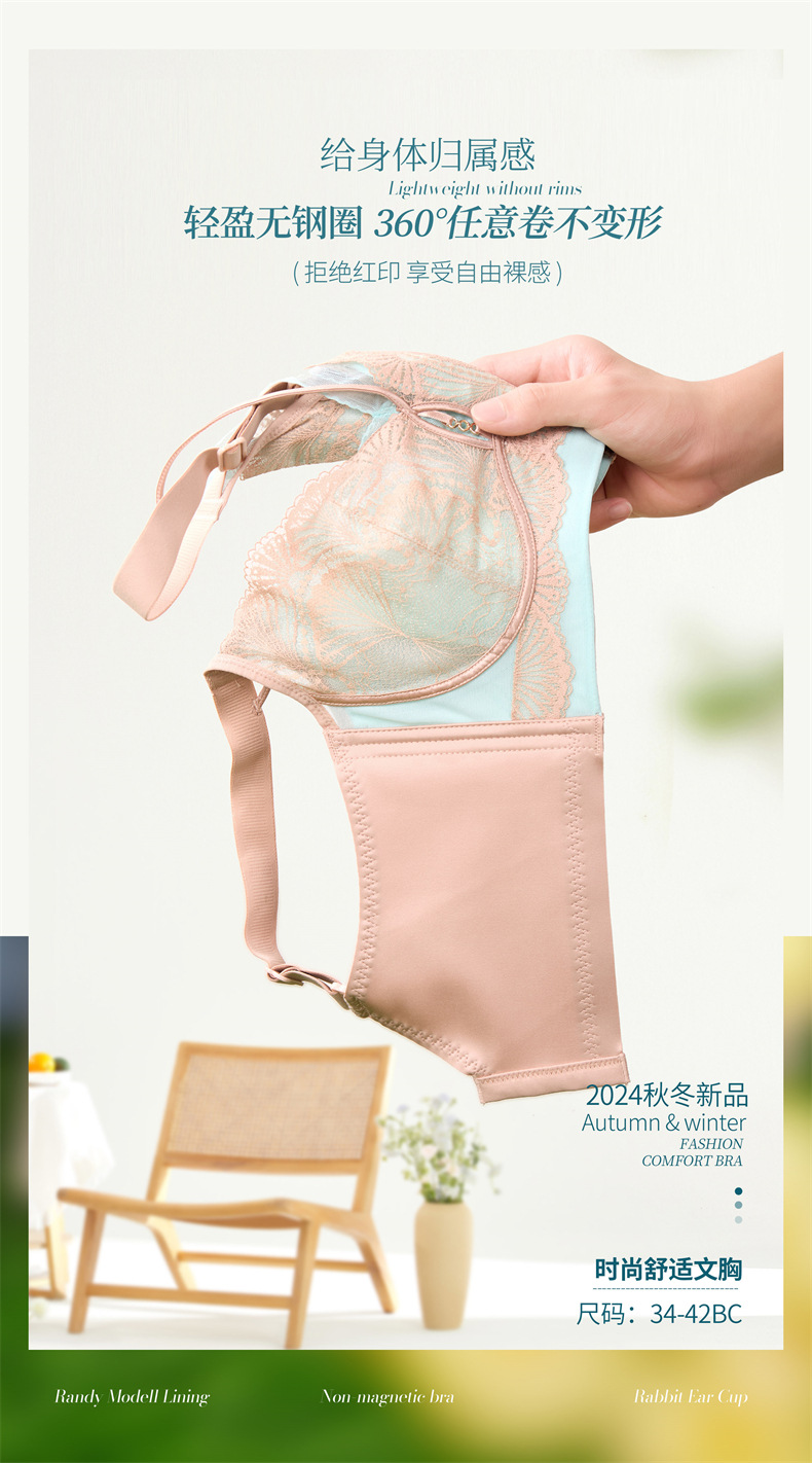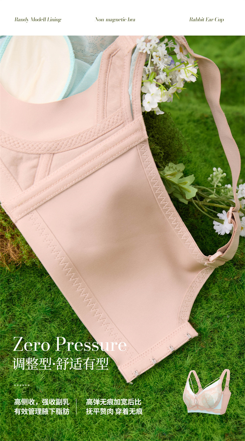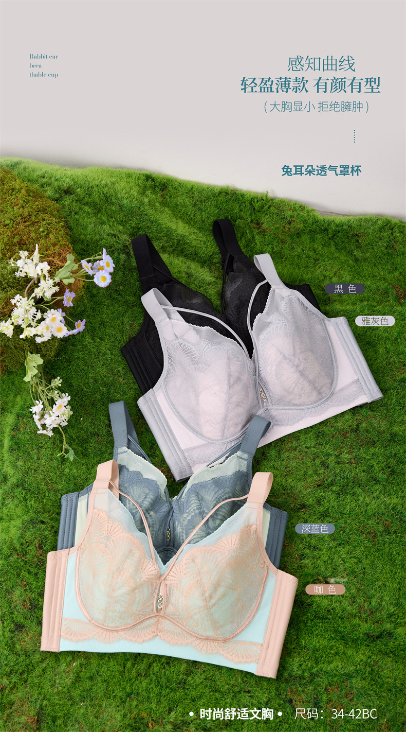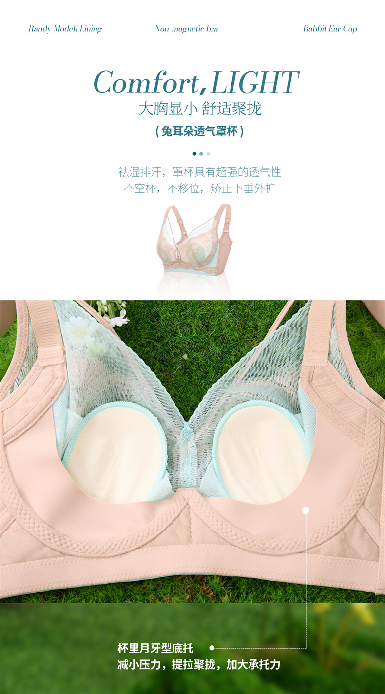 蕾丝性感美胸带兔耳水晶杯大胸显小聚拢侧收副乳调整型文胸内衣女