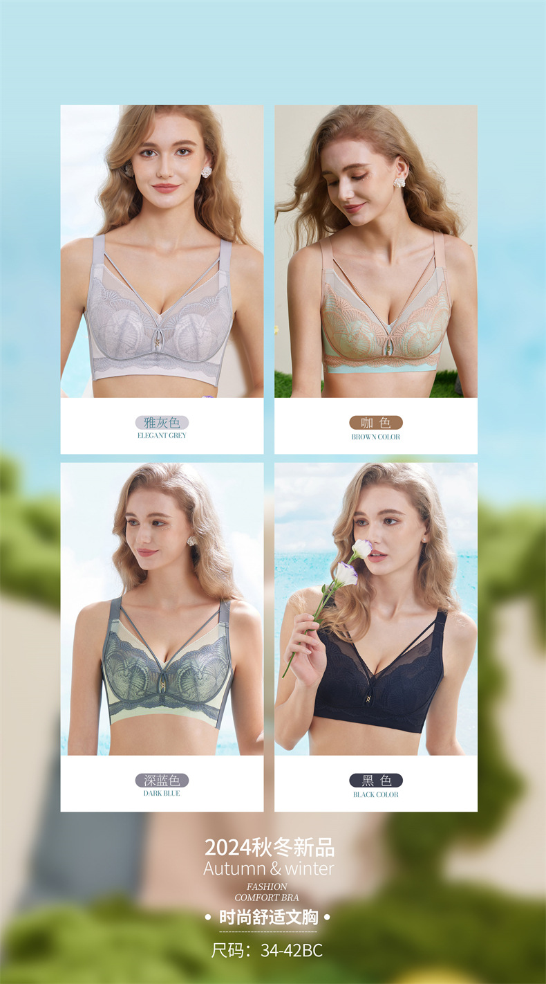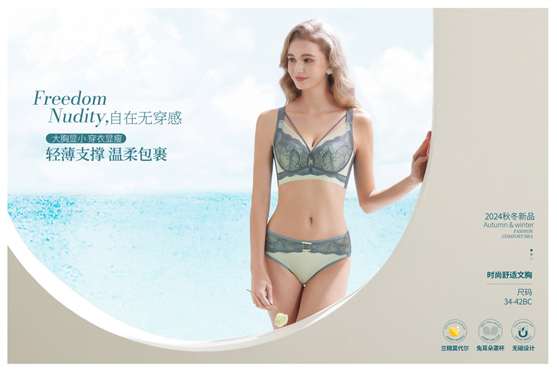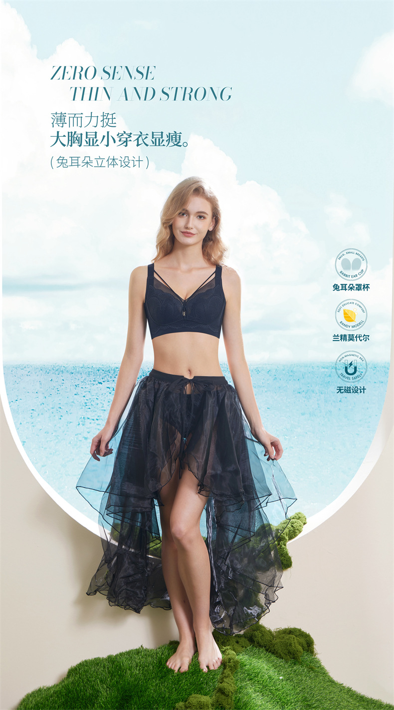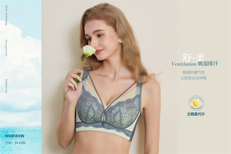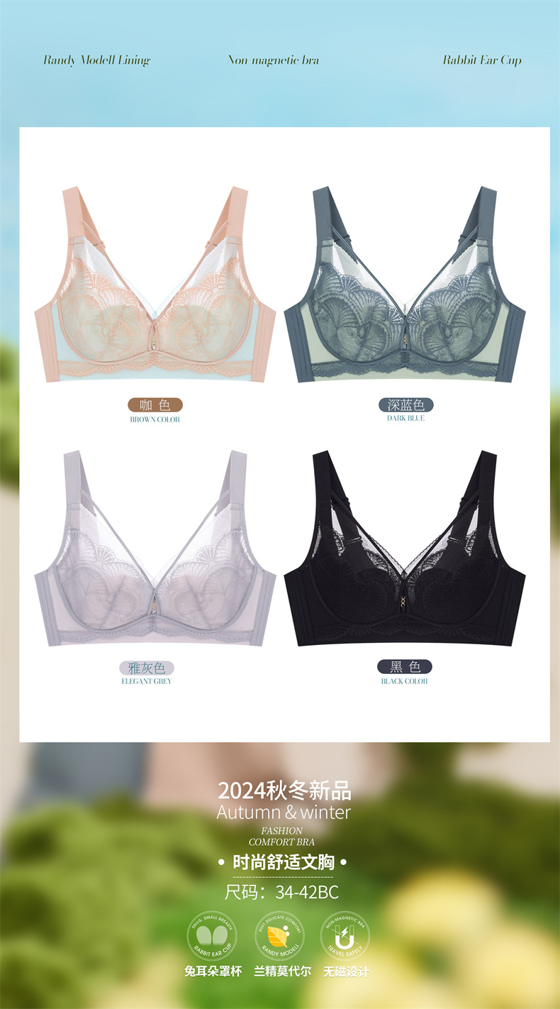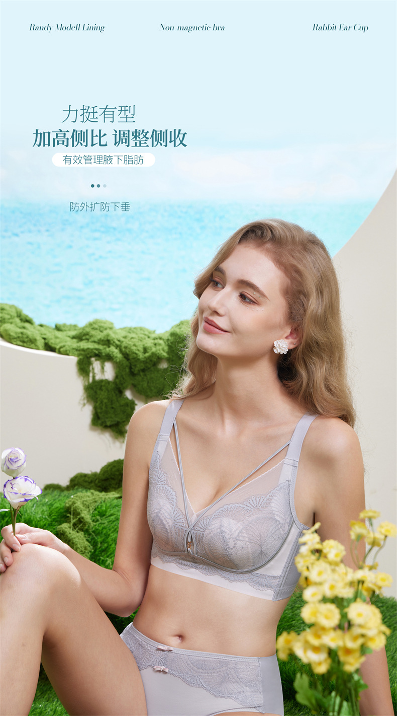 蕾丝性感美胸带兔耳水晶杯大胸显小聚拢侧收副乳调整型文胸内衣女