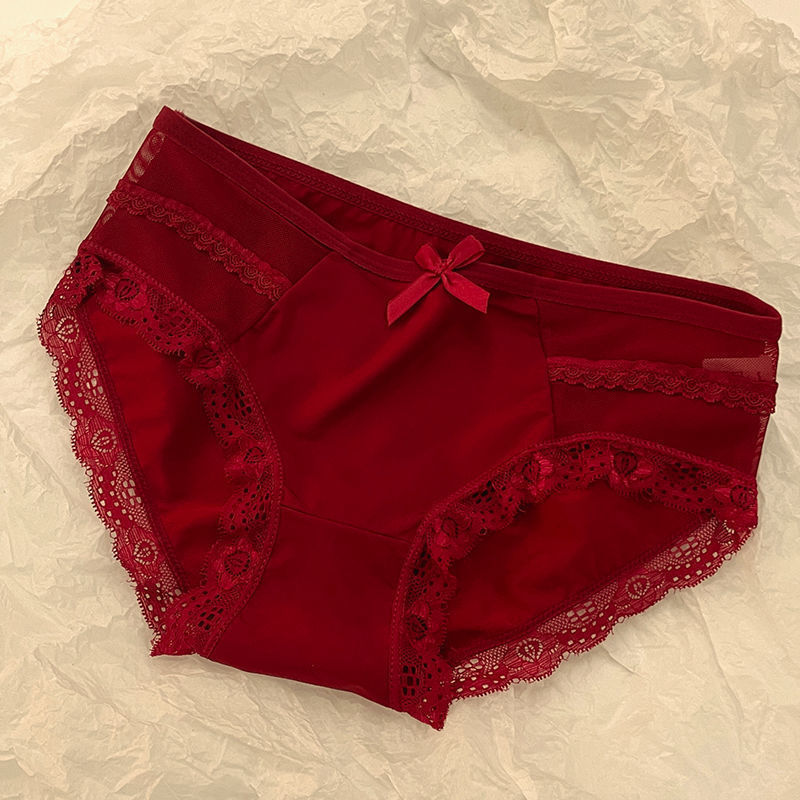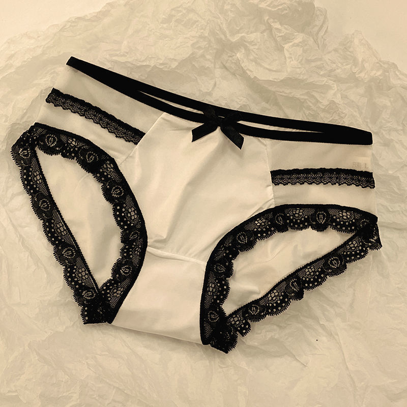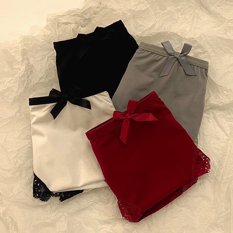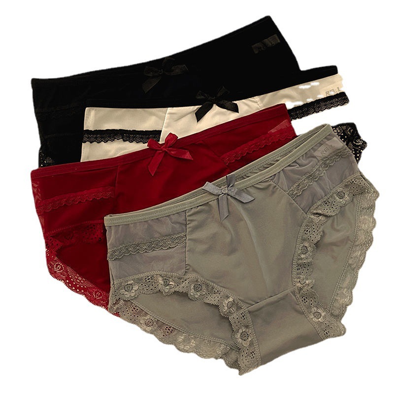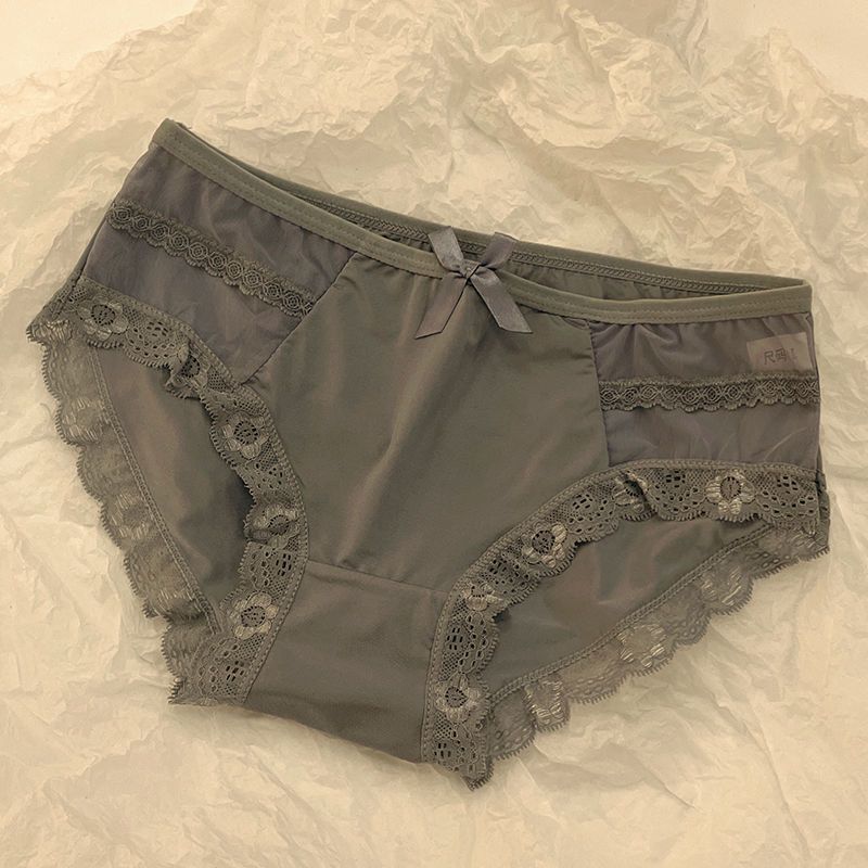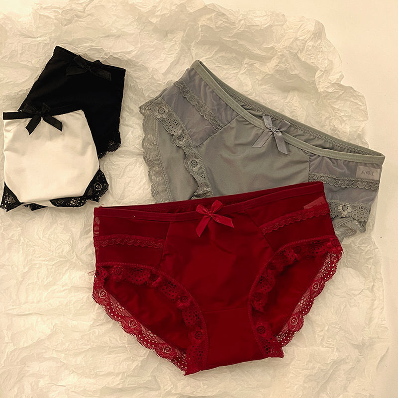 纯欲少女蝴蝶结中腰冰丝内裤清凉蕾丝提臀学生三角裤棉质裆底裤薄