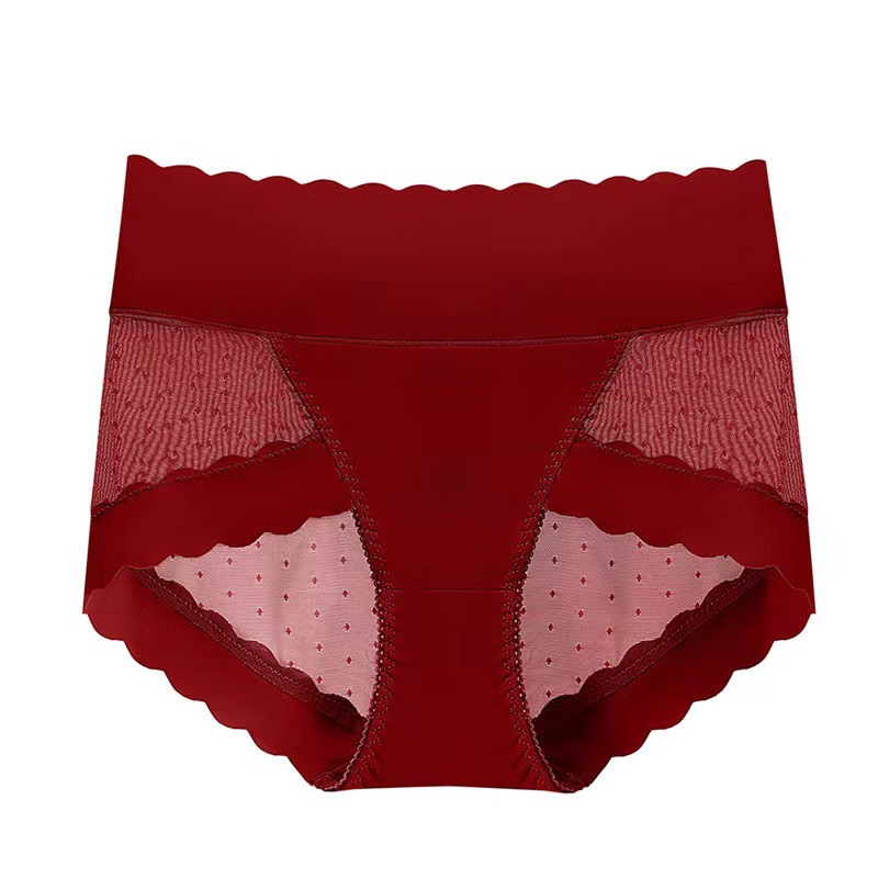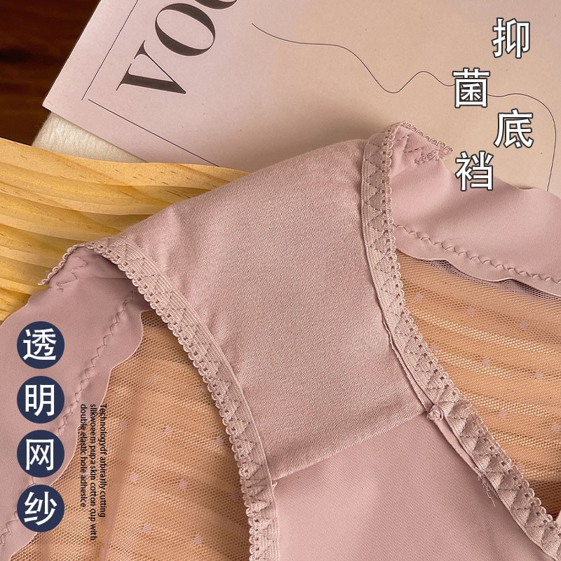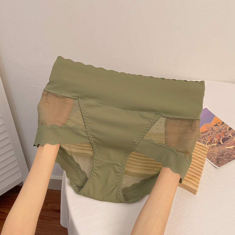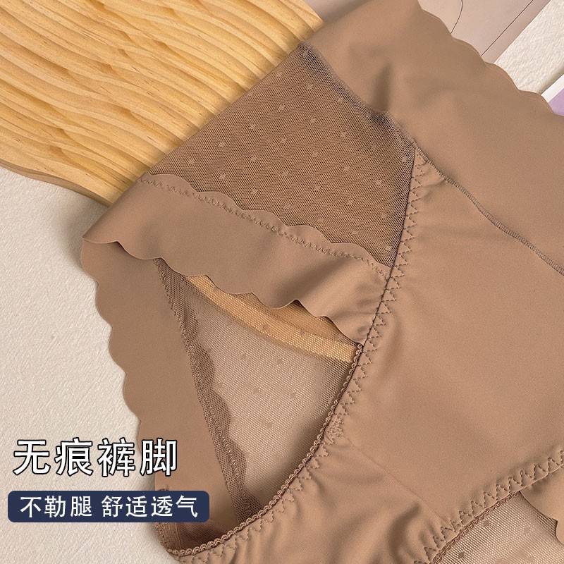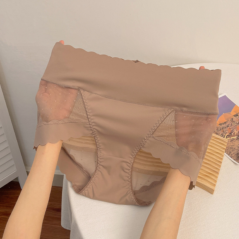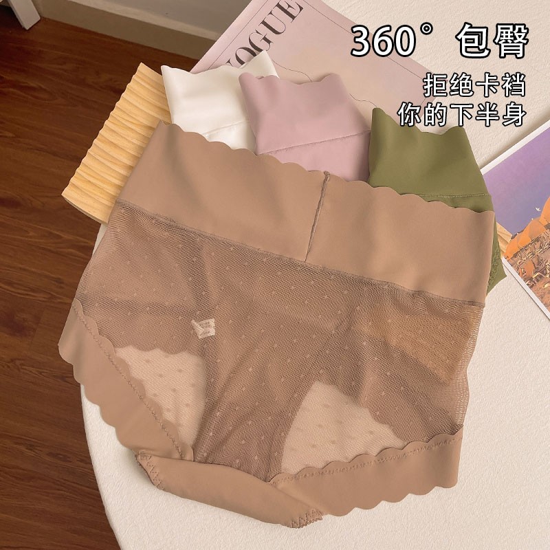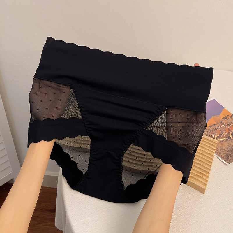 高腰收腹冰丝无痕内裤女款夏季薄款拼接波点网纱收腹提臀纯棉底裆