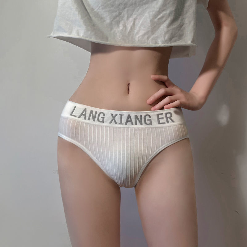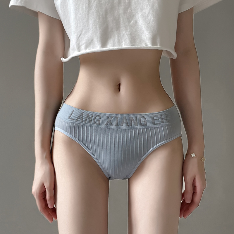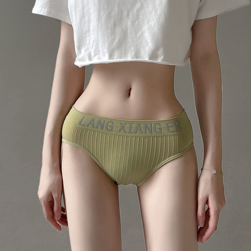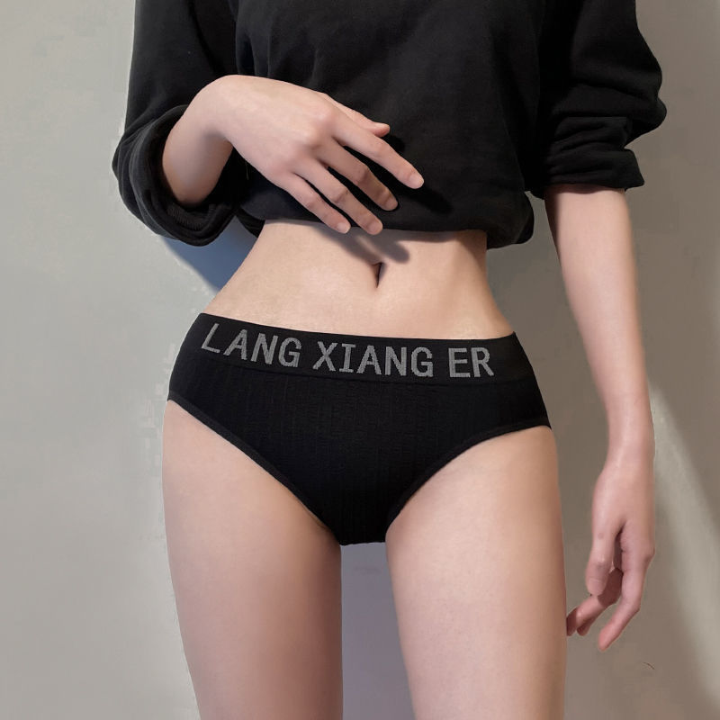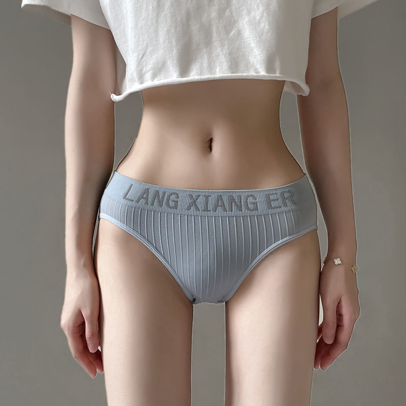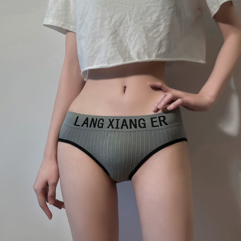 无痕内裤女士柔软舒适螺纹棉质底裆中腰女欧美英文字母运动风短裤