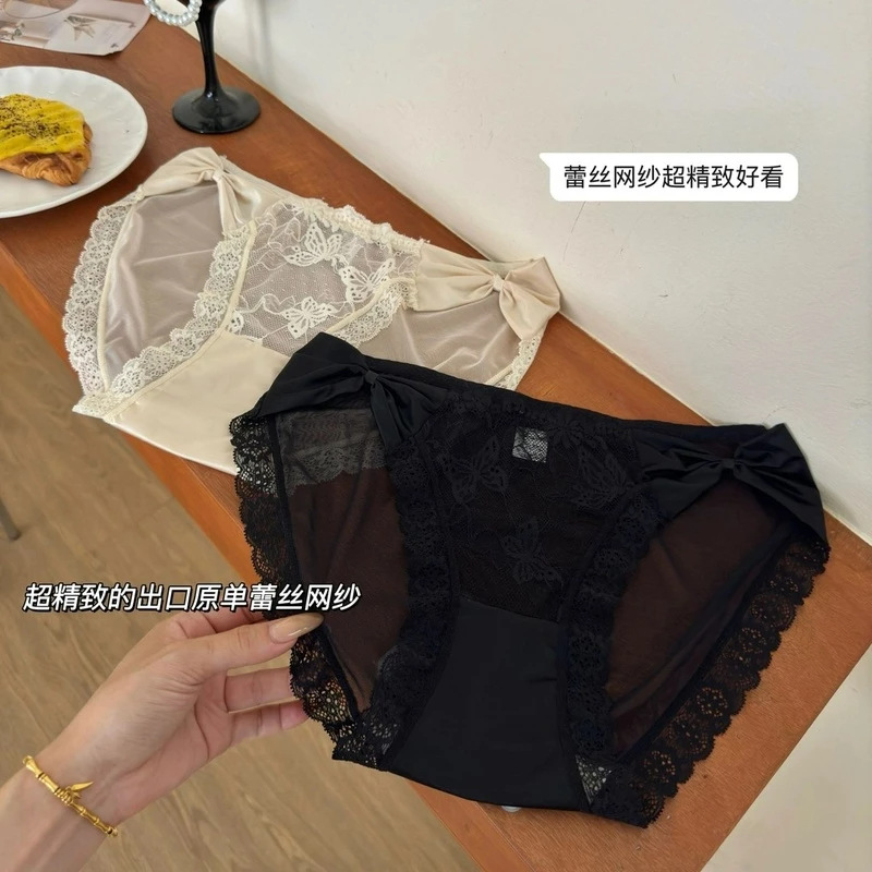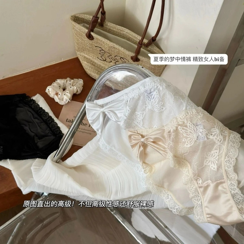 冰丝无痕内裤女款舒适透气女生纯棉抗菌裆轻奢缎面蝴蝶结女士短裤