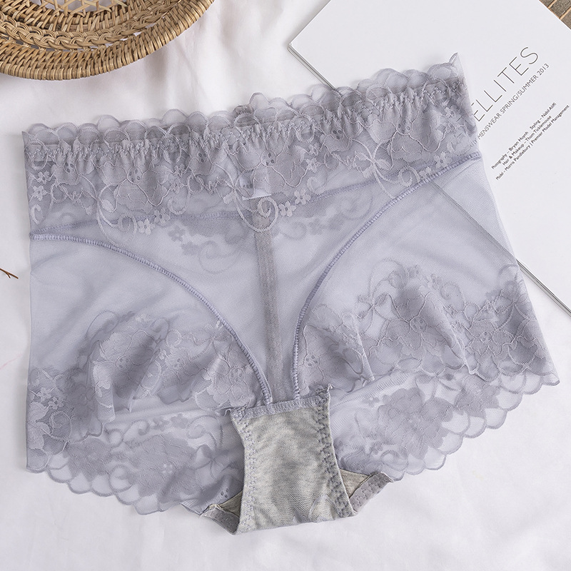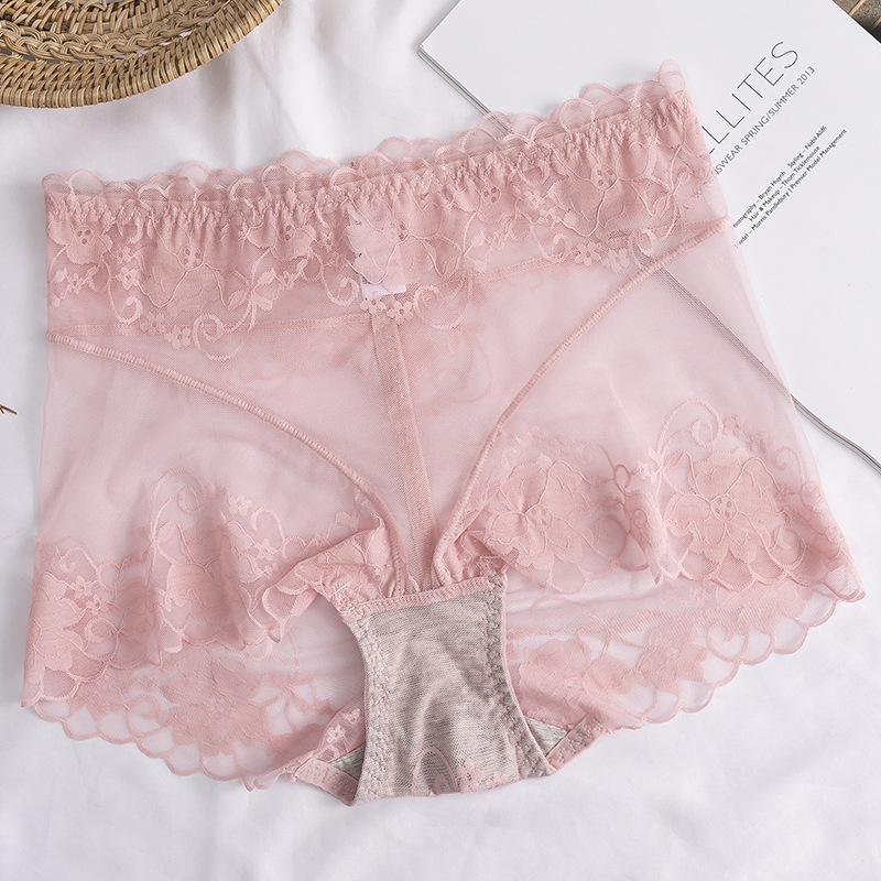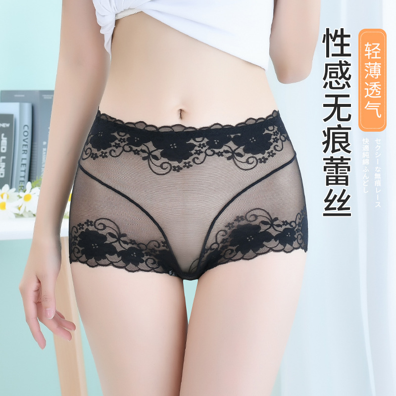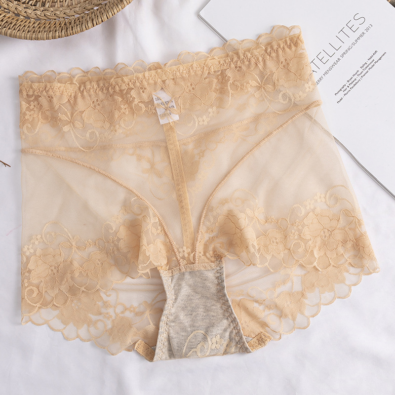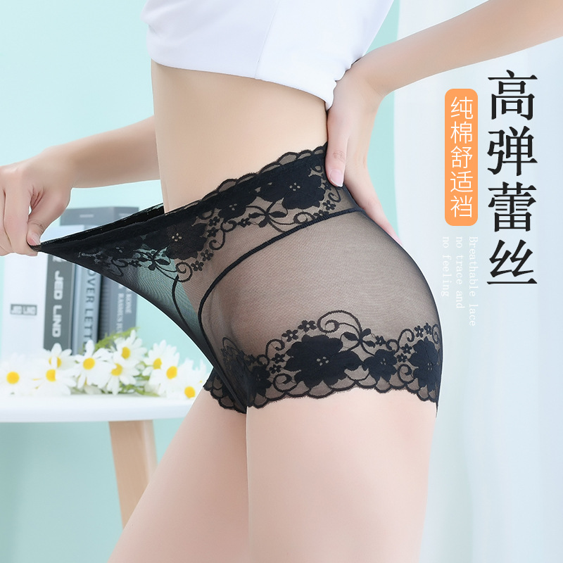 高腰蕾丝内裤女士情调性感惑无痕收腹提臀全棉裆透气纯欲网纱短裤