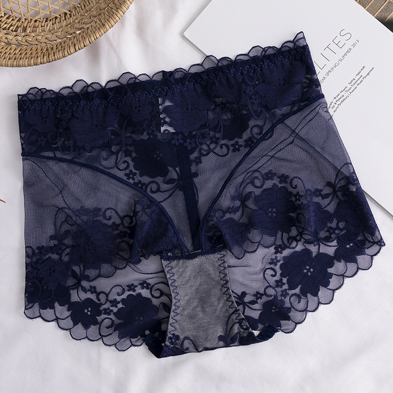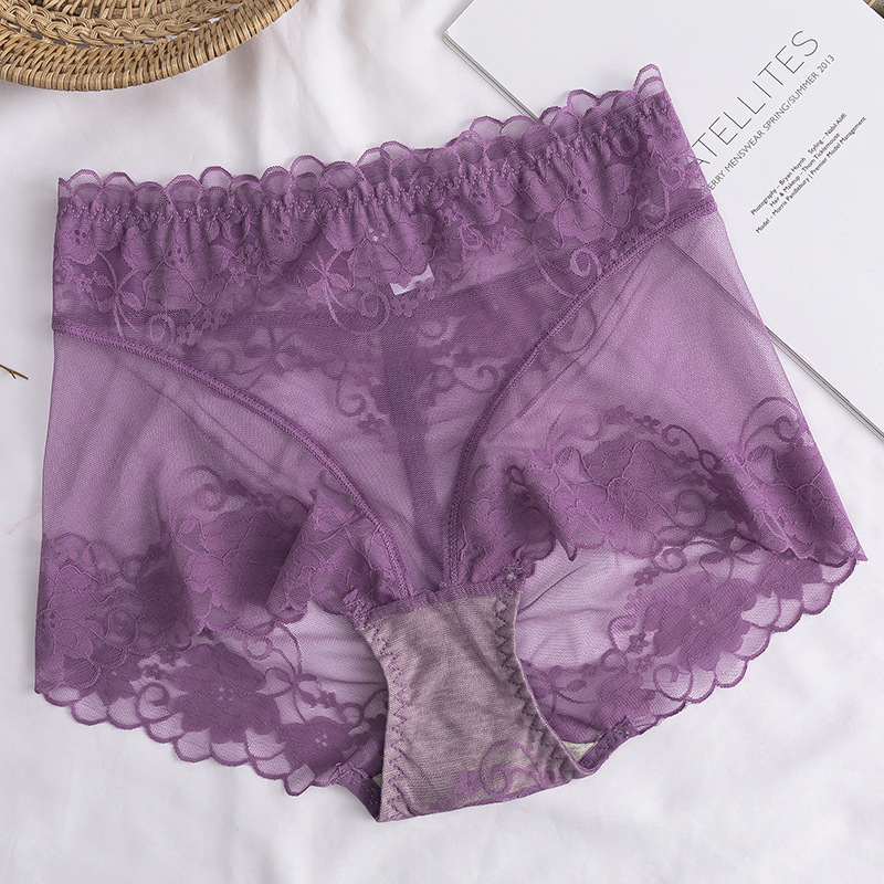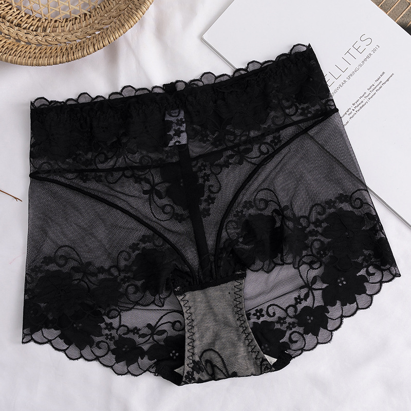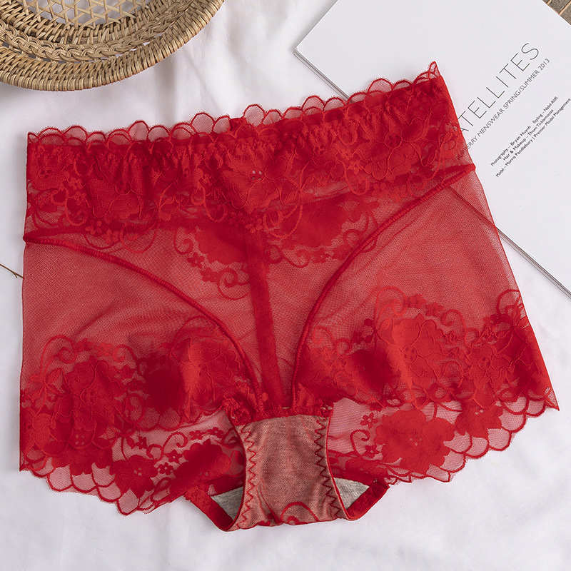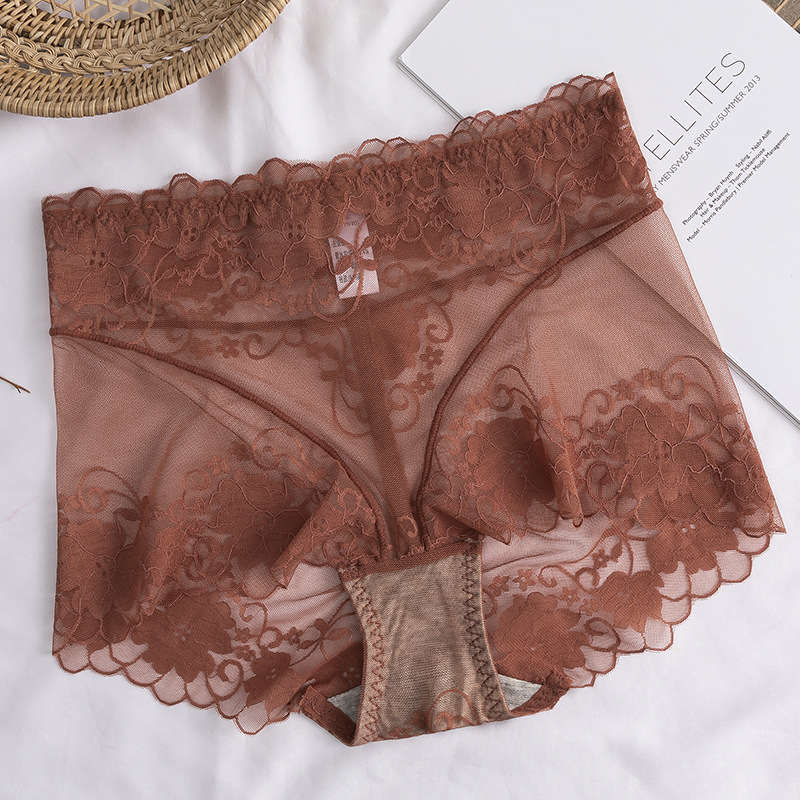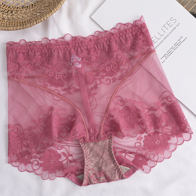 高腰蕾丝内裤女士情调性感惑无痕收腹提臀全棉裆透气纯欲网纱短裤