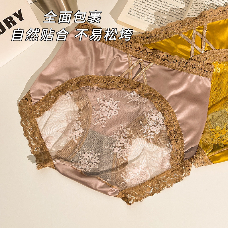 内裤女冰丝中高腰大码收腹提臀抗菌纯棉裆透气性感蕾丝女三角内裤