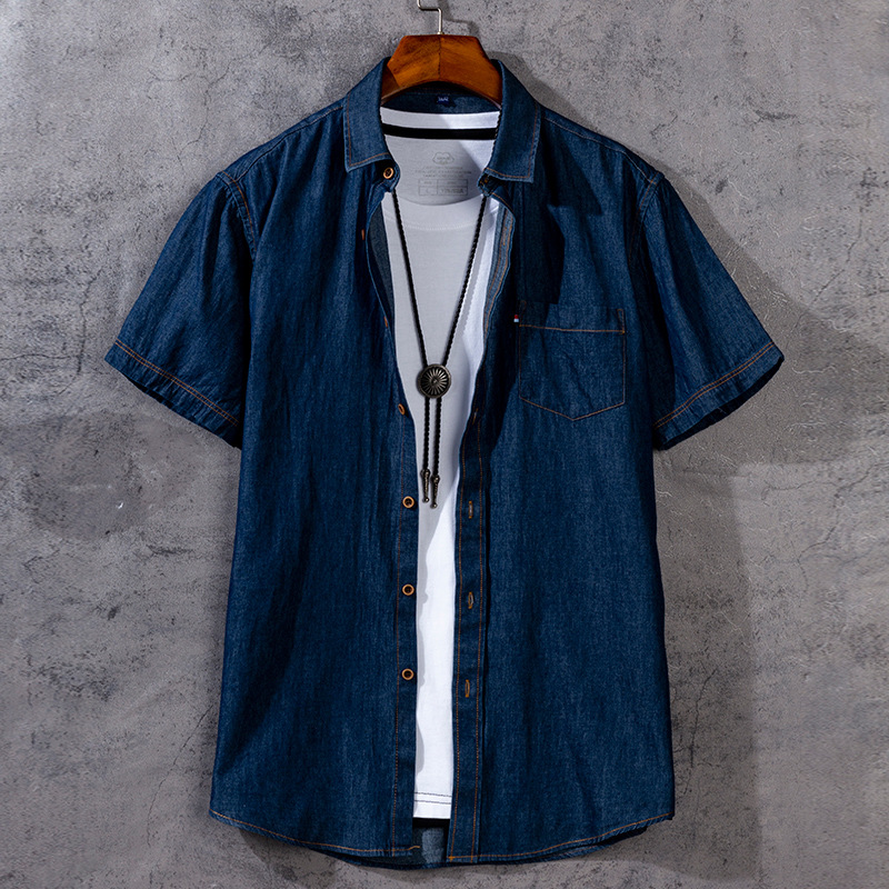 牛仔短袖衬衫男士夏季薄款纯棉宽松衬衣男款休闲帅气外套百搭开衫